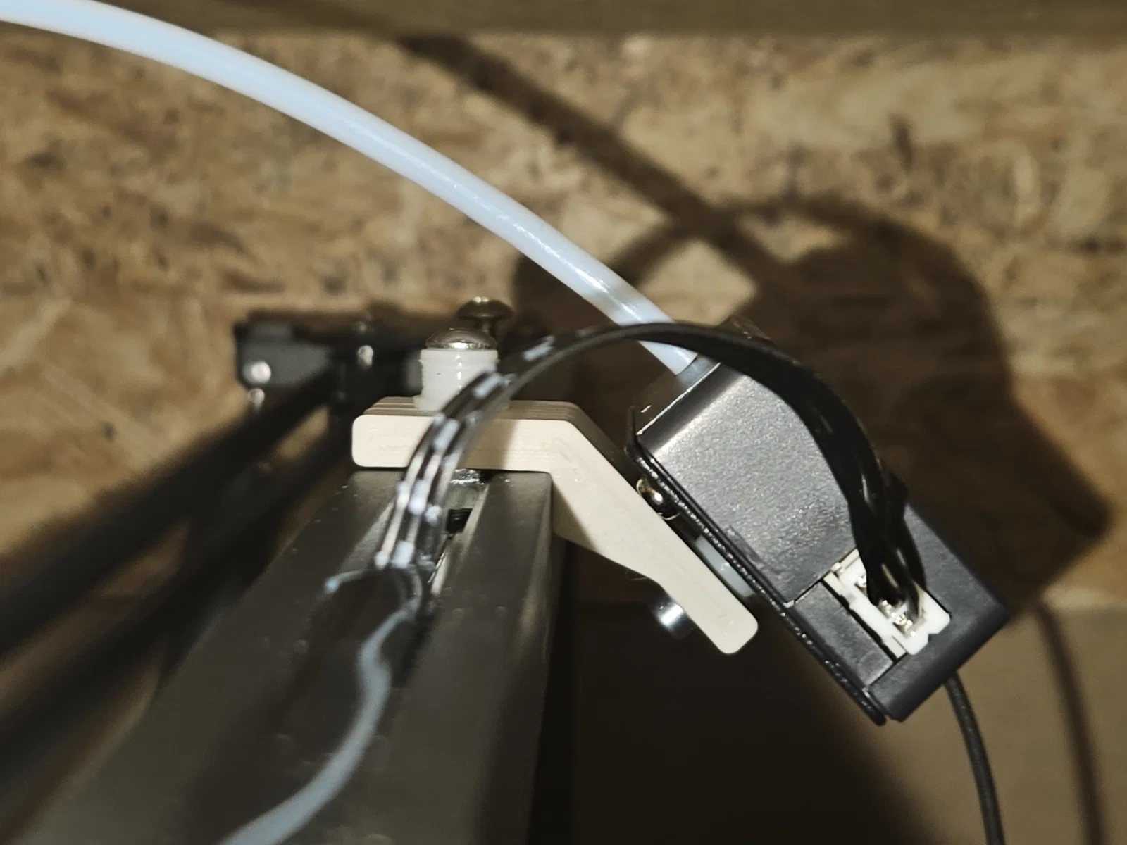 Thông tin cập nhật: Mình thấy một bài trên reddit nói có người bị mòn thủng cái bạc đồng (brass bushing) trên runout sensor. Sau khi kiểm tra cái của mình (khoảng 120 giờ in sau khi dùng cái bracket này, chỉ in PLA, không dùng filament dạng mài mòn) thì mình cũng thấy bắt đầu có một rãnh nhỏ hình thành trên bạc đồng ở mặt dưới. Mình đoán việc để filament lúc nào cũng cọ ở mặt dưới theo góc 45° như vầy sẽ làm nó mòn nhanh hơn so với khi sensor được gắn song song với đường đi của filament.