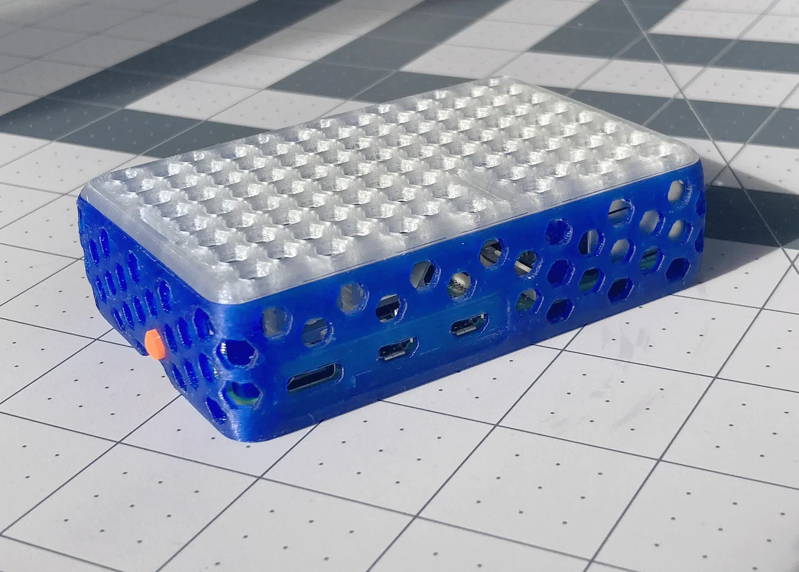 Nút bấm được thiết kế để gắn vào đáy với cạnh phẳng hướng lên như hình minh hoạ. Nút sẽ dùng để shut down và start up RPi5.