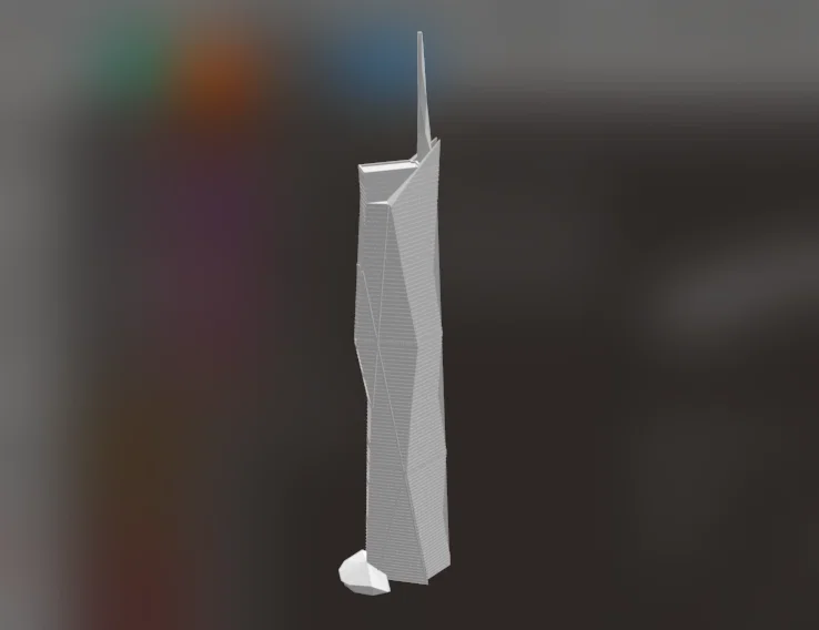 Mô hình mini Merdeka 118 (Kuala Lumpur, Malaysia) – tòa nhà cao thứ 2 thế giới tính đến 2024. Dễ in, không cần supports; thêm brim/đế phẳng để tránh rung và bong khỏi heated bed. In chậm ~20 mm/s.