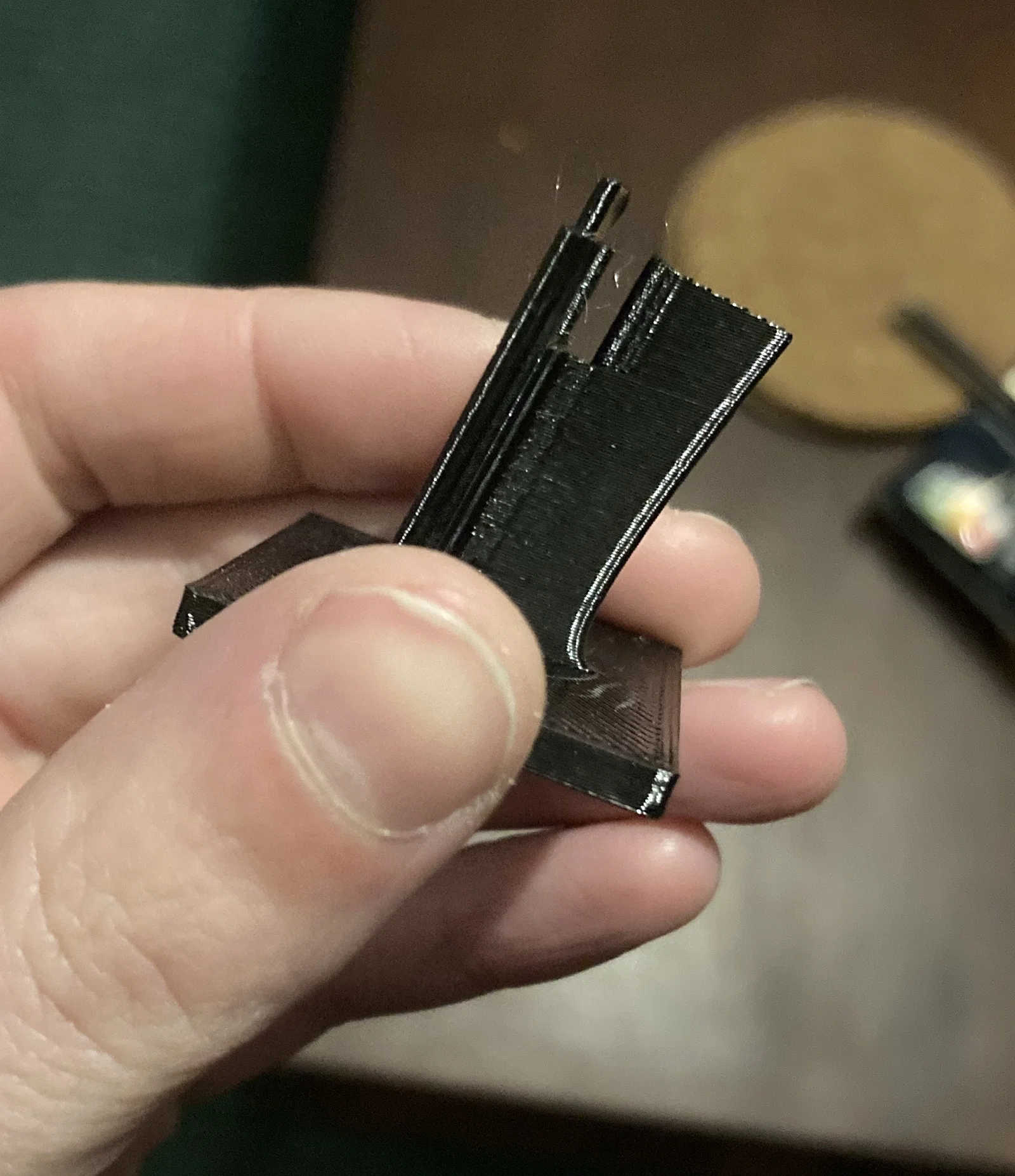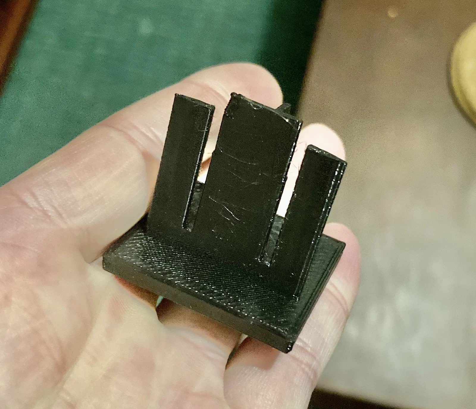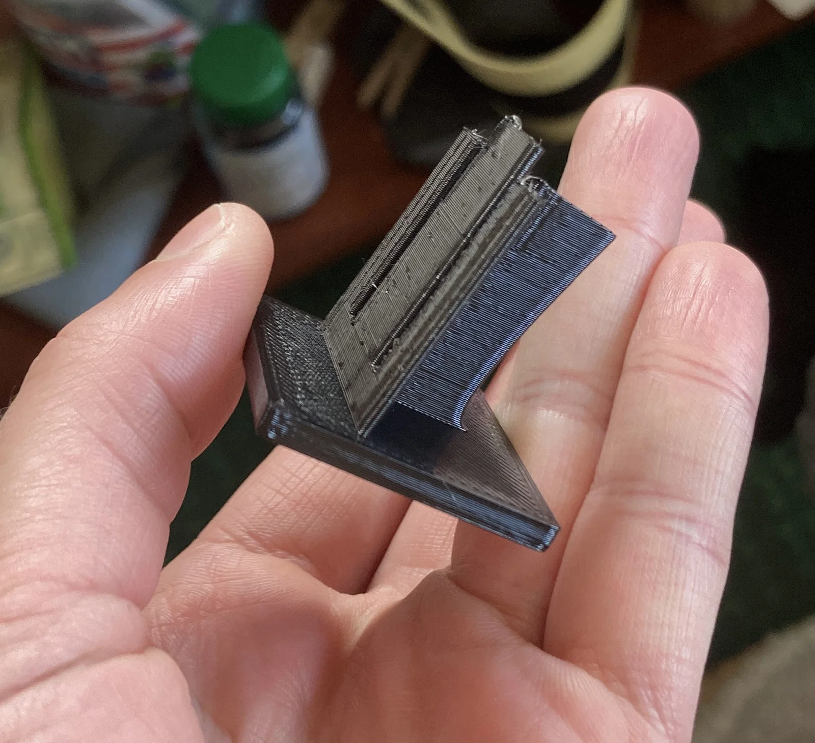 Hãng vẫn còn sản xuất thiết bị, nhưng không làm cái holder nữa, nên mình đã dựng mẫu này dựa trên một bản remix từ Thingiverse để thay cho cái bị bể. Dùng ngon như đồ zin. (Thiết kế hơi “mỏng manh” một chút là do mấy cái chốt phải làm mảnh để cài vào thiết bị, mà hướng layer cũng không giúp được nhiều.) Nhưng vẫn làm đúng nhiệm vụ.