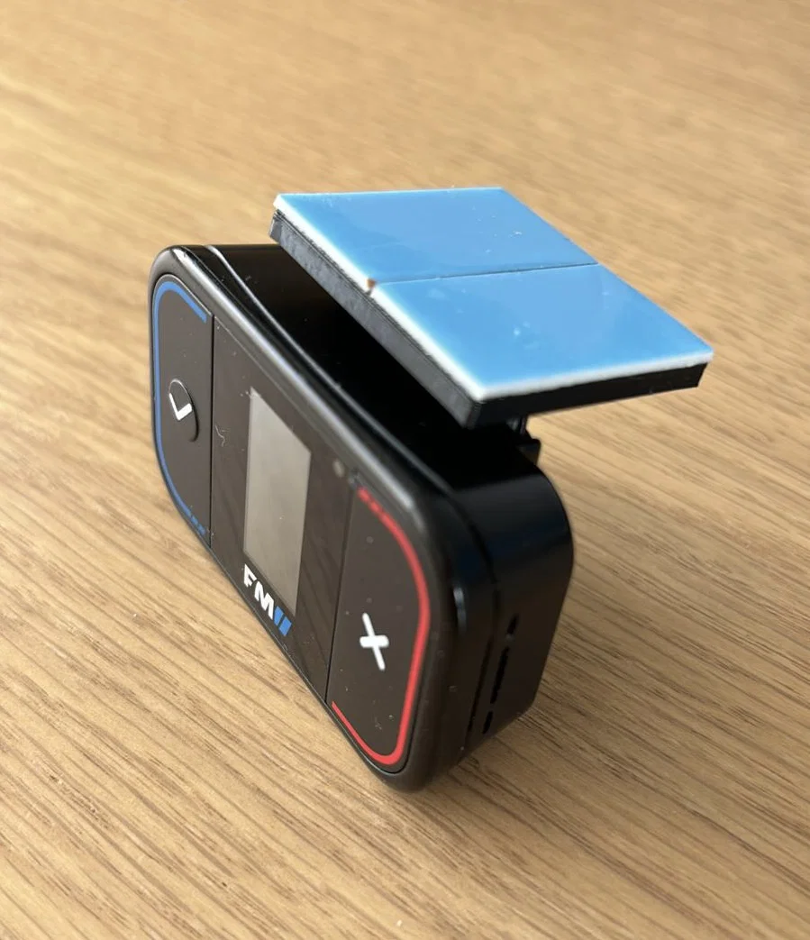 Giá đỡ Flitsmeister 2 dùng với miếng dán trong xe để gắn thiết bị. Mẫu thay thế cho holder bị hỏng; in PETG để chịu nhiệt mùa hè, layer 0.2mm, nozzle 0.6mm. Không cần support.
