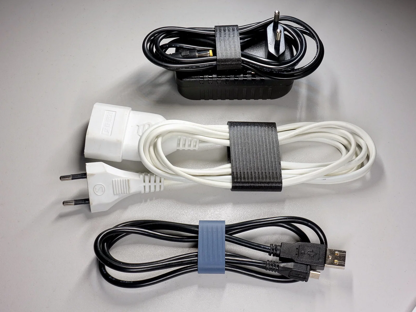 Kẹp dây cáp dạng dẻo để gom gọn dây đã gấp lại, dùng snap lock đàn hồi nên đóng/mở dễ dàng. Có 3 size khác nhau, phù hợp nhiều loại cáp. Khuyên in PETG hoặc PLA+ để kẹp bền và ít gãy.