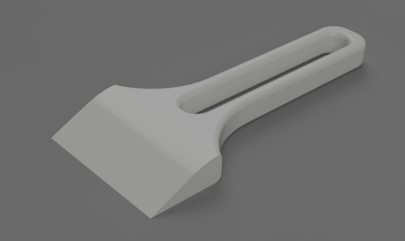 Cây scraper này rất gọn. Góc của phần nêm phía trước là 26.6° nên khá cứng cáp. Mình khuyên in với layer height thấp để nó chắc hơn.