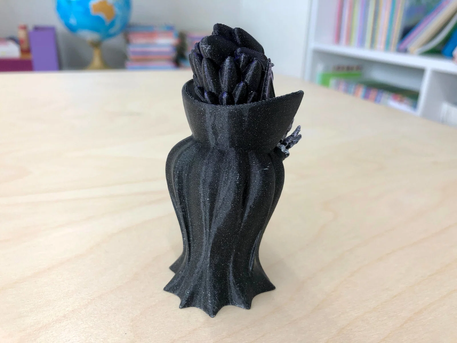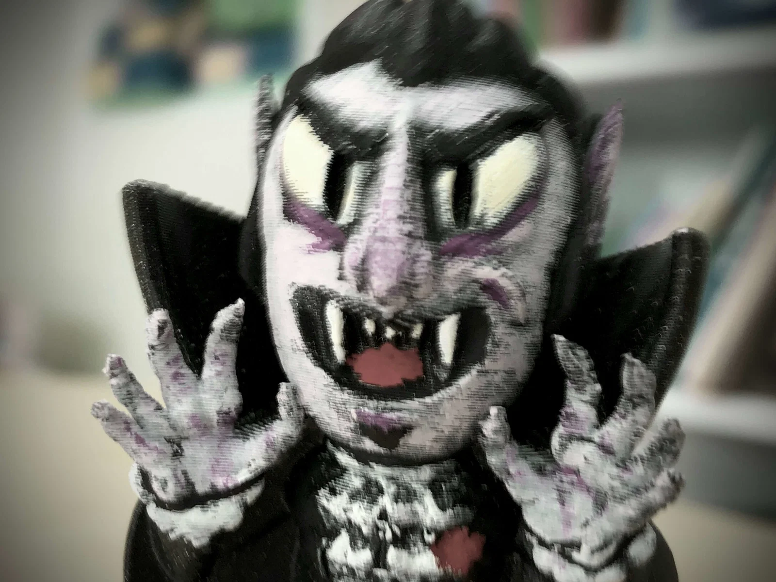 Mẫu ma cà rồng vui nhộn do tác giả tự tạo, in siêu dễ và 100% không cần supports. Thích hợp làm tượng trưng bày hoặc đồ chơi; khuyến nghị 3–5 perimeters và infill 12–16% (gyroid) để chắc chắn.