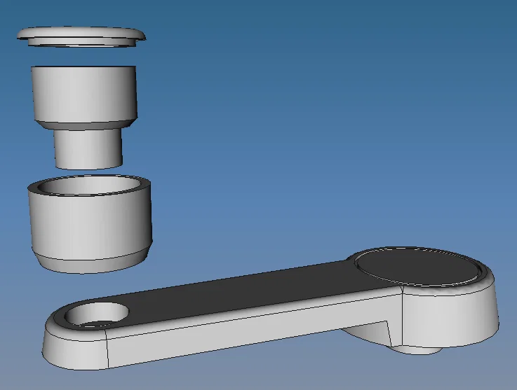 Phần lắp ráp: chỉ cần nhét knob_base vào trong knob, rồi dán knob_tap bằng keo cyanoacrylate (keo 502). Sau khi ráp xong, đưa phần gờ nhô của knob_base vào handle và dán lại (mình dùng keo epoxy). Cuối cùng, bẻ/cắt bỏ phần support nhỏ ở vị trí lẫy kẹp (retaining clip). Phần support này được thiết kế để tháo dễ bằng kìm mũi nhọn (needle-nose pliers). Xem hình bên dưới.