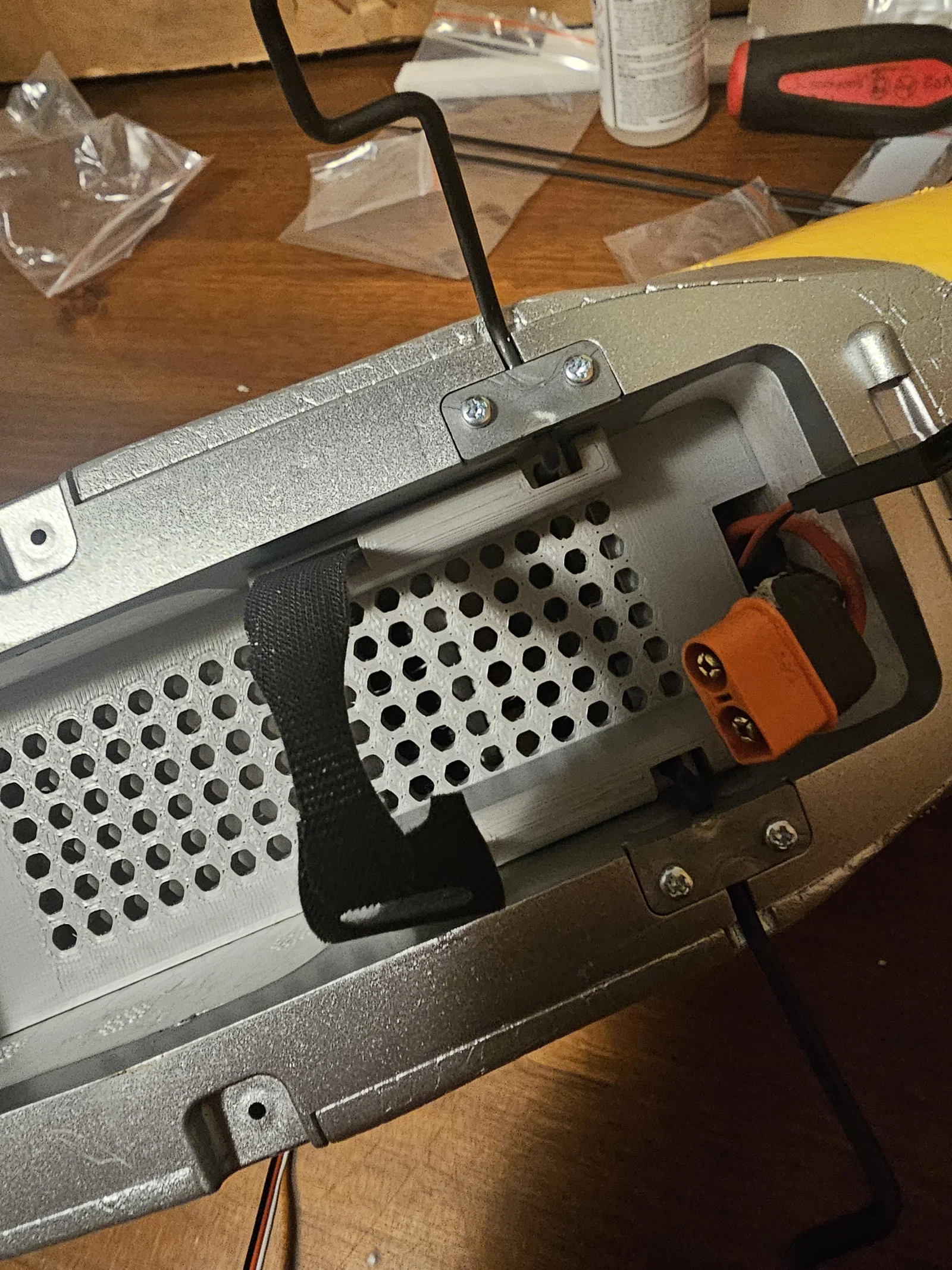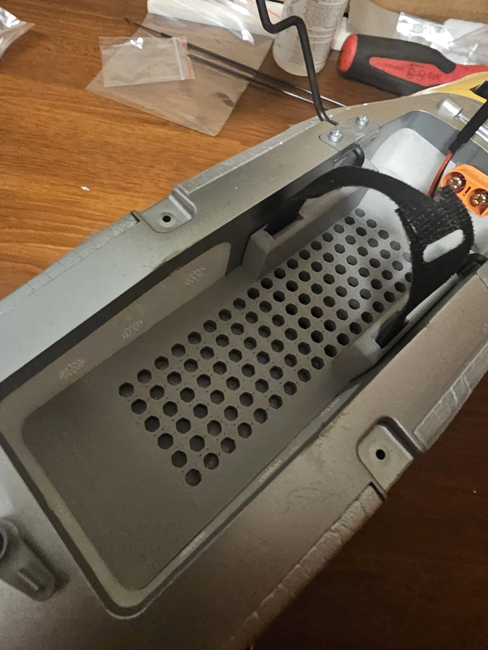 Khay pin của ZeroCool làm rất ngon vì nó giữ cục pin 2200mah vừa khít và trượt vào đúng các khe càng (gear slots) zin. Nhờ vậy nó hợp với anh em xài máy bay zin, chưa bị “quăng quật” bởi người mới tập bay. Bản remix của mình là bỏ mấy chốt định vị (locator pegs) trên thiết kế của bạn ấy để dùng được nhiều kích cỡ pin hơn.