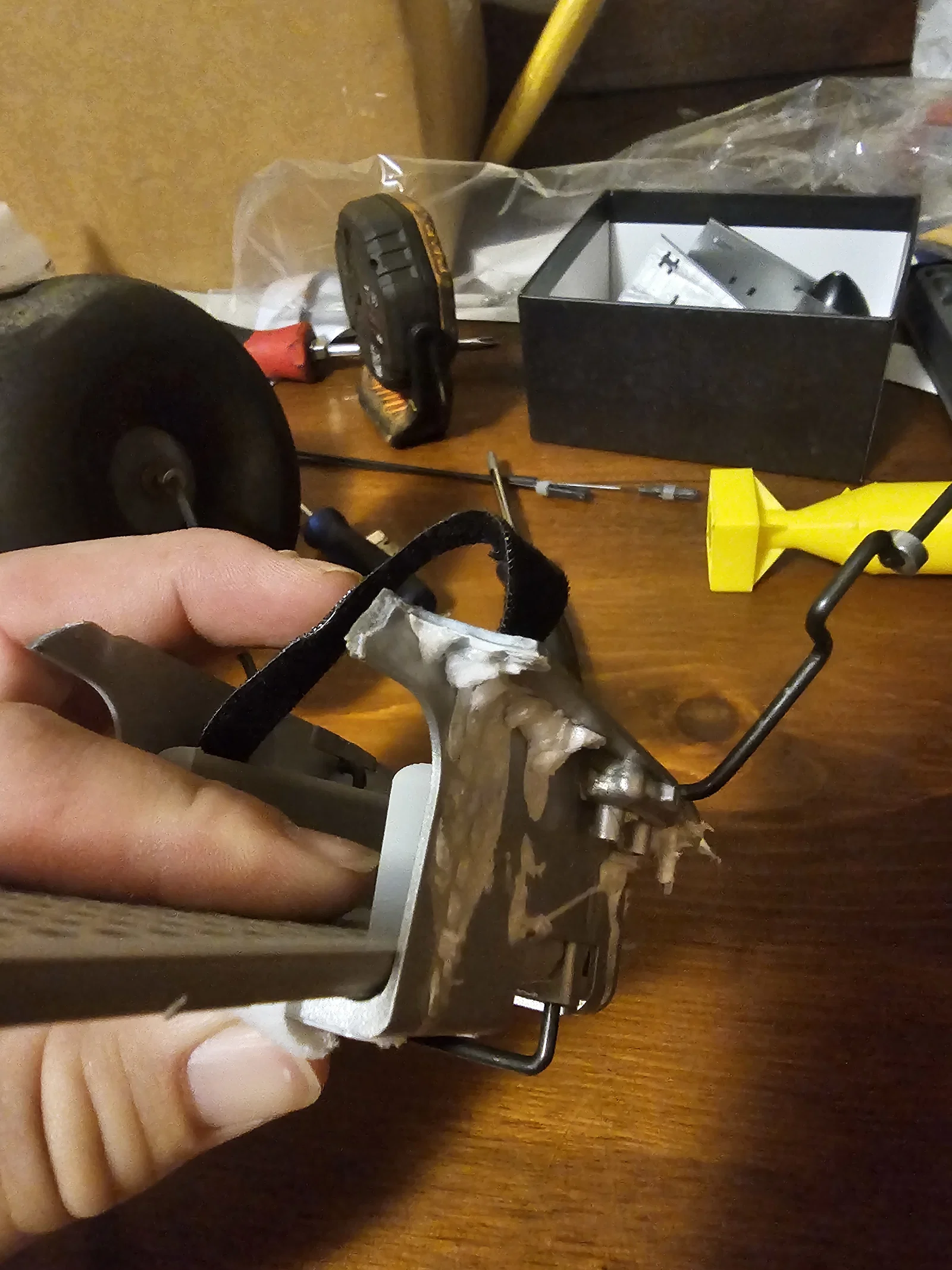 Mình cũng có một phiên bản giảm kích thước khe càng để có thể luồn hai chân càng kim loại (metal gear legs) vào trong nếu mấy ngàm/tab zin bị gãy do đáp của người mới hoặc bay bụi (bush flying). Phiên bản này sẽ ôm chân càng khít và đỡ trên diện tích tiếp xúc lớn hơn, phần xung quanh cũng cứng cáp hơn nhiều. Bạn sẽ bẻ cong chân càng trước khi làm bể cái khay. Mình đã test bản này trên máy bay của mình, do bay bụi và gió nên có vài lần đáp hơi mạnh, cuối cùng làm gãy mấy tab mỏng manh trong thân (fuselage). Ngoài việc mua nguyên cái fuselage mới thì gần như không có giải pháp ổn để sửa phần này. Bản remix này mục tiêu là xử lý vấn đề đó và giúp anh em tiết kiệm tiền.