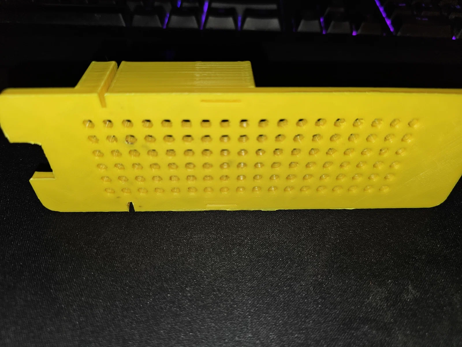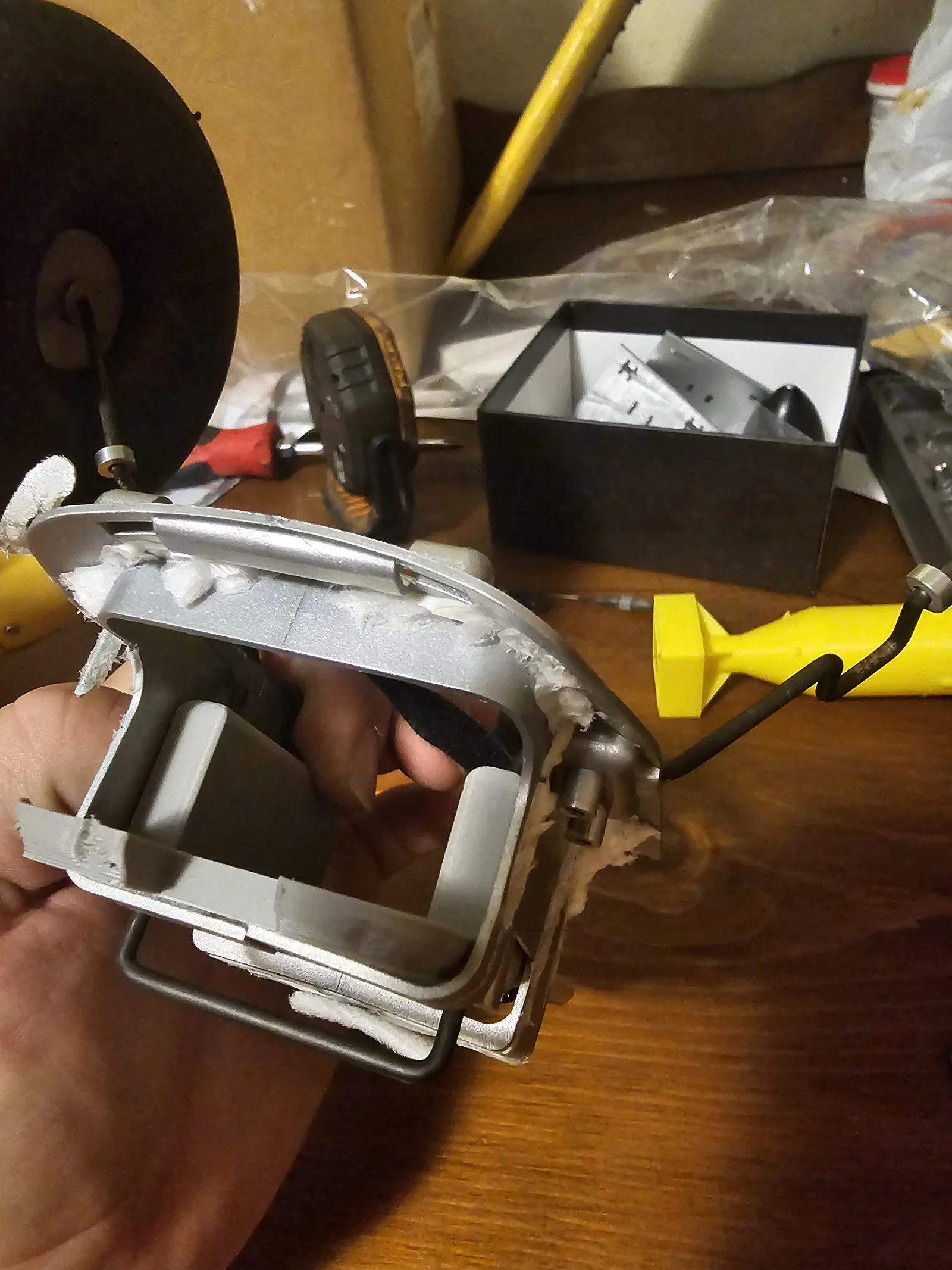 V2 giờ đã có. Mình thêm một đường bo (fillet) ở cạnh dưới để nó ngồi sát hoàn toàn xuống trong khay pin, giúp vẫn nhét được pin dày hơn. V2 hiện chỉ dành để gia cường (reinforcement) cho khay càng zin; mình chưa làm phiên bản để sửa khay bị gãy. Hình V2 (bản in màu xám) là lắp trong một khay càng đã bị càng giật bung ra do tông vào cây. Phần ngàm bắt càng zin sau đó vẫn còn nguyên. Cái gia cường này ngon hơn nhiều so với để zin rồi chờ gãy khi đáp mạnh.