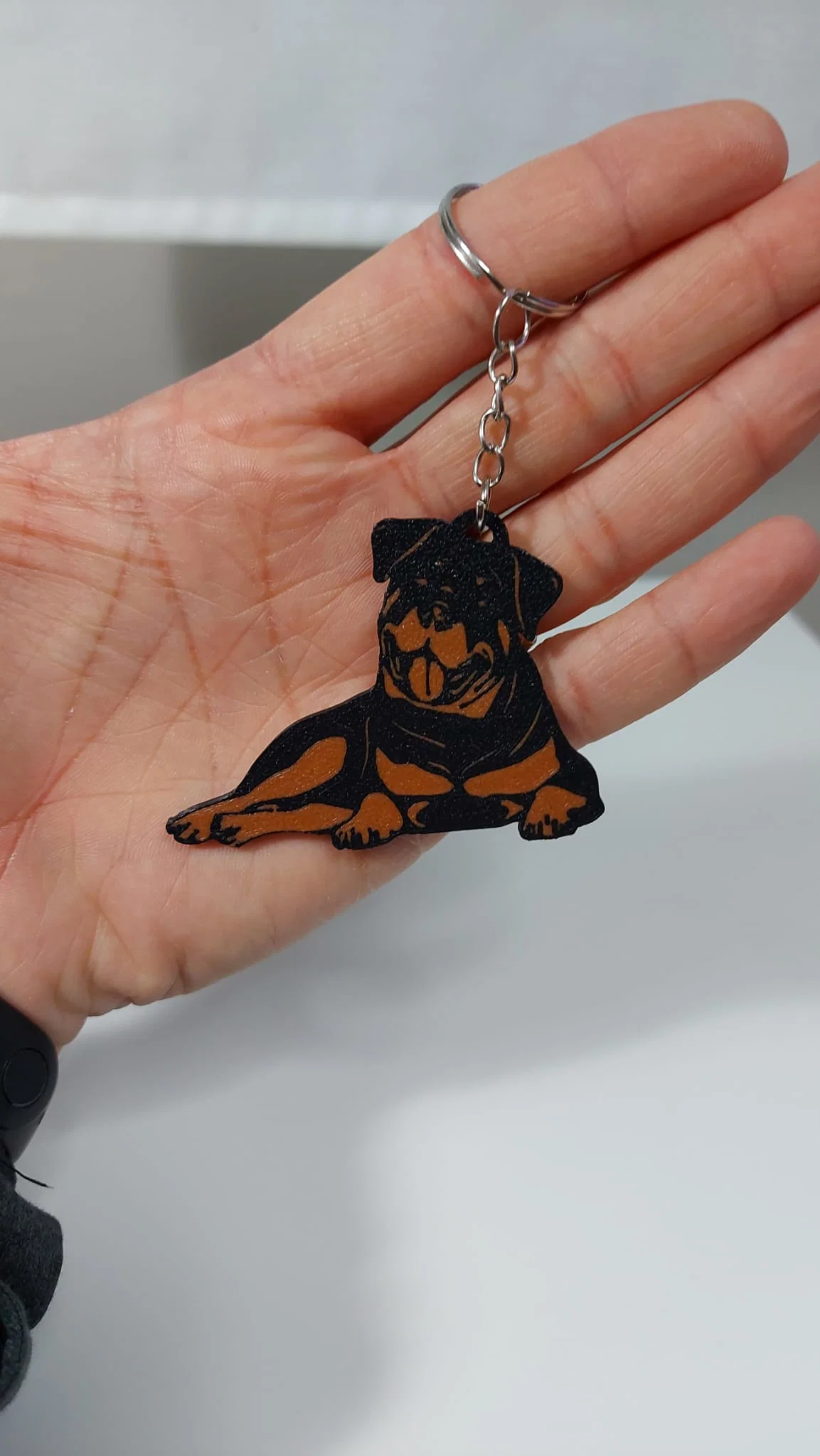 Bạn là một người yêu thích những chú chó Rottweiler mạnh mẽ và trung thành? Vậy thì mẫu thiết kế móc khóa 3D này chính là món phụ kiện hoàn hảo dành riêng cho bạn. Với kiểu dáng được mô phỏng chi tiết hình ảnh chú chó Rottweiler đang nằm thư giãn, sản phẩm này mang lại vẻ ngoài vừa đáng yêu nhưng không kém phần cá tính cho chùm chìa khóa, túi xách hay balo của bạn.