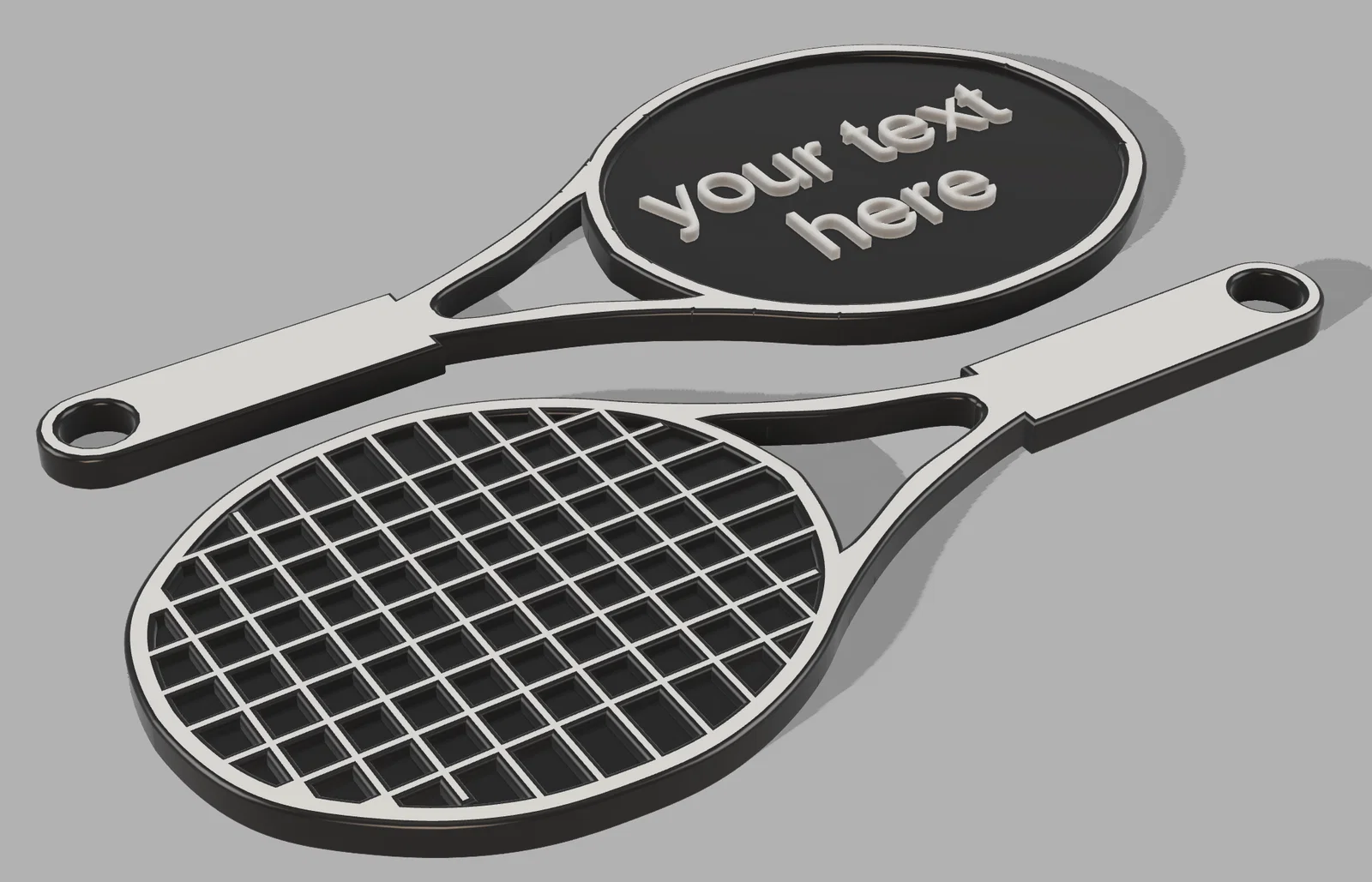 Móc khóa tennis tùy biến, món quà/phụ kiện gọn đẹp cho người chơi tennis. Dễ thêm tên/chữ hoặc logo bằng Prusa Slicer hay các bản fork (Orca Slicer, Bambu Studio, Super Slicer); có thể swap filament để chữ/logo nổi bật.