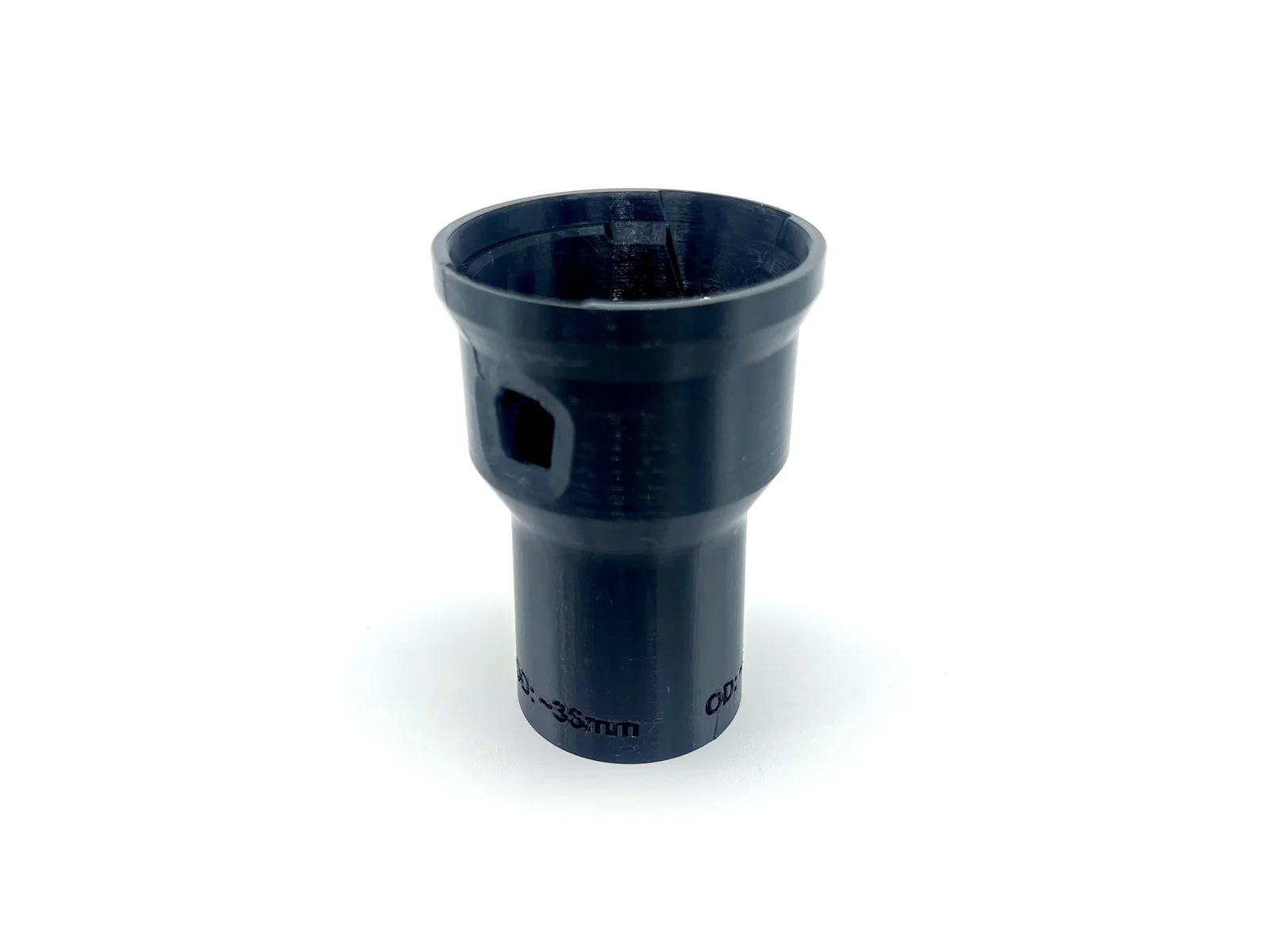 Mình có 2 loại adapter: một loại thiết kế để đút vào dust port, và một loại thiết kế để chụp bên ngoài dust port. Với dust port nhỏ, để tối ưu lưu lượng hút (throughput) mình dùng adapter chụp ngoài; với dust port lớn thì mình dùng adapter lắp phía trong.