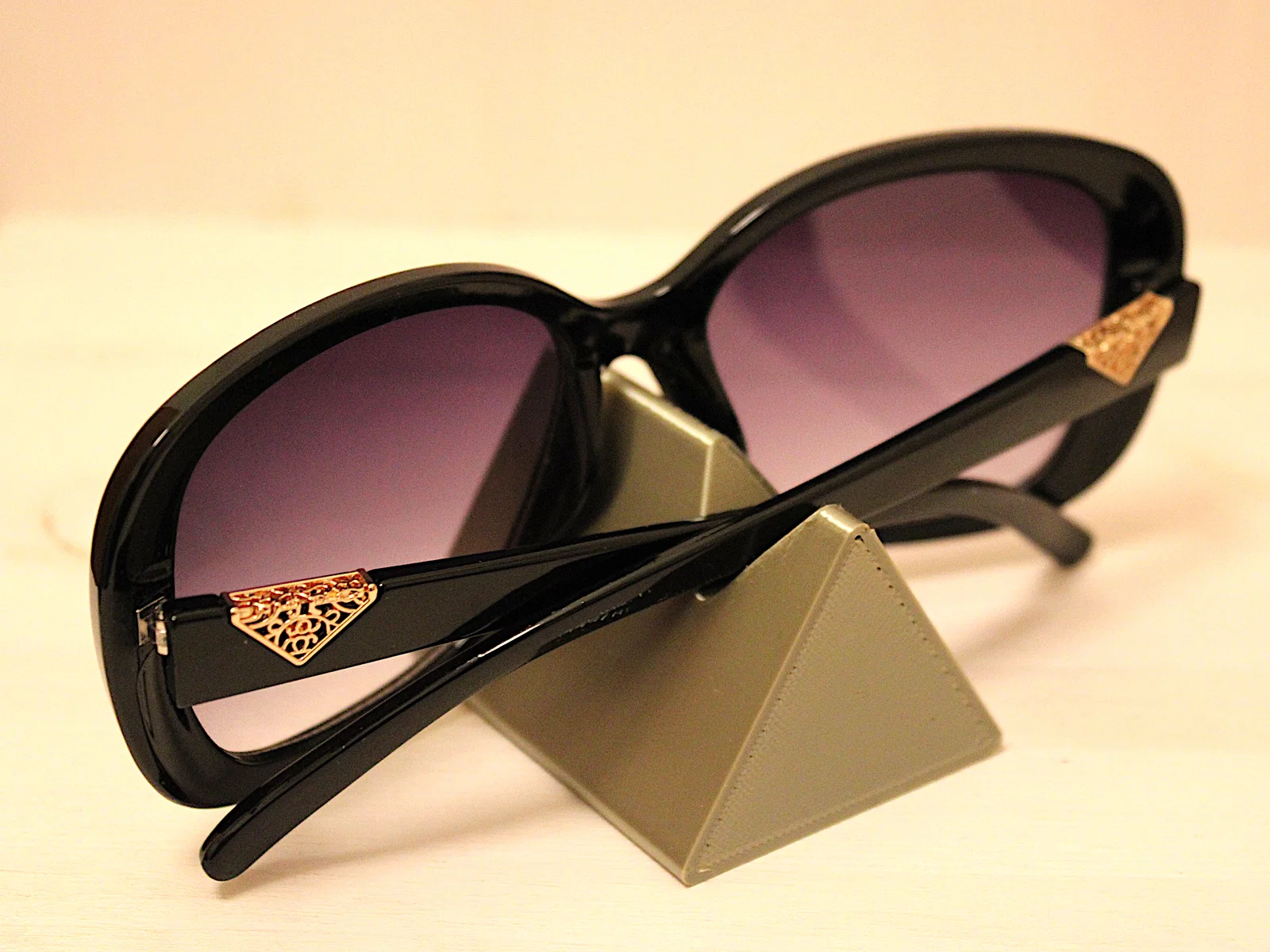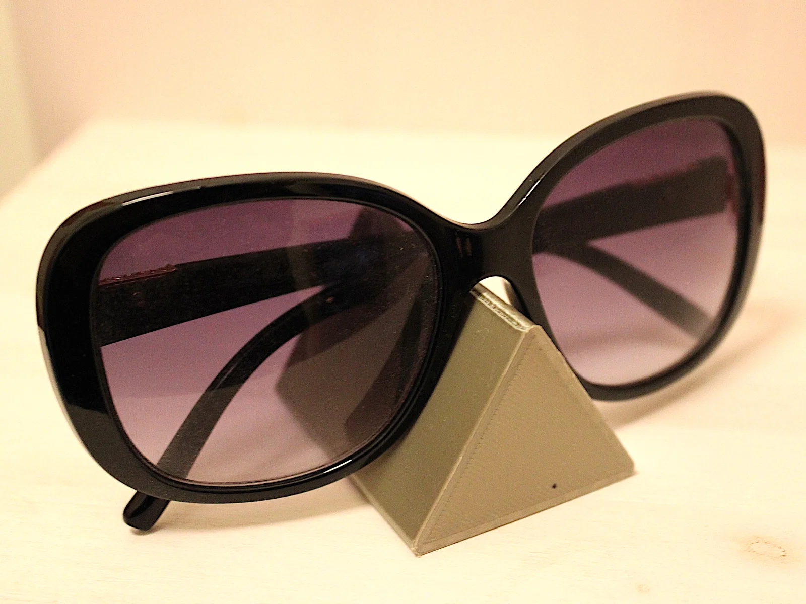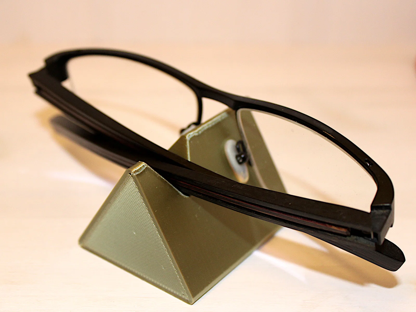Bản remix của The Maburs Glasses Holder, thêm khoét tam giác để vừa kính bản to hoặc kính có bridge/nose pads lệch cao. Có thể lật ngược để hợp nhiều kiểu kính. Kèm mẹo in khi gặp overhang 50%.