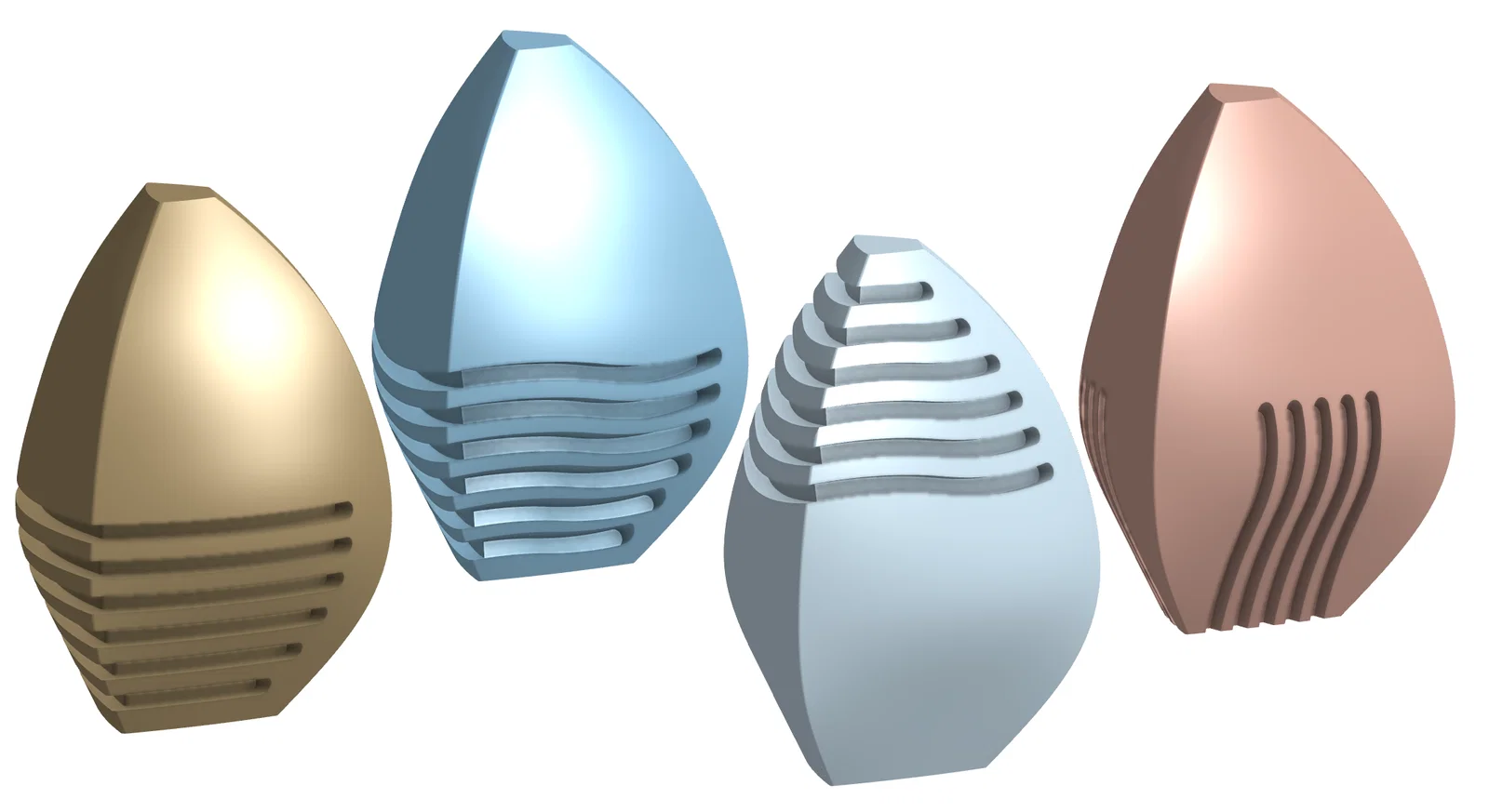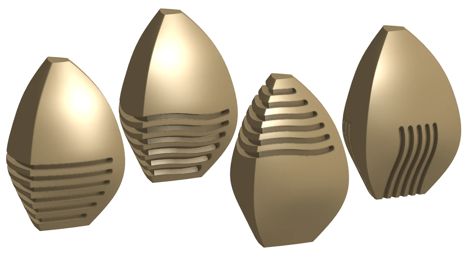 Đây là các mẫu “lai” hình học giữa mấy viên đá dạng lăng trụ tam giác trong bộ phim The Fifth Element (bộ mình mê nhất) và dáng quả trứng. Là một bài tập CAD khá hay khi dựng mấy mẫu này.