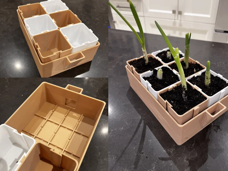 Mẫu chậu ươm cây Starter kèm khay tự tưới, có vòi châm nước tiện lợi và lỗ đáy giúp phân phối nước đều đến rễ. Rất phù hợp để ươm cây con trước khi chuyển ra trồng ở vườn chính.