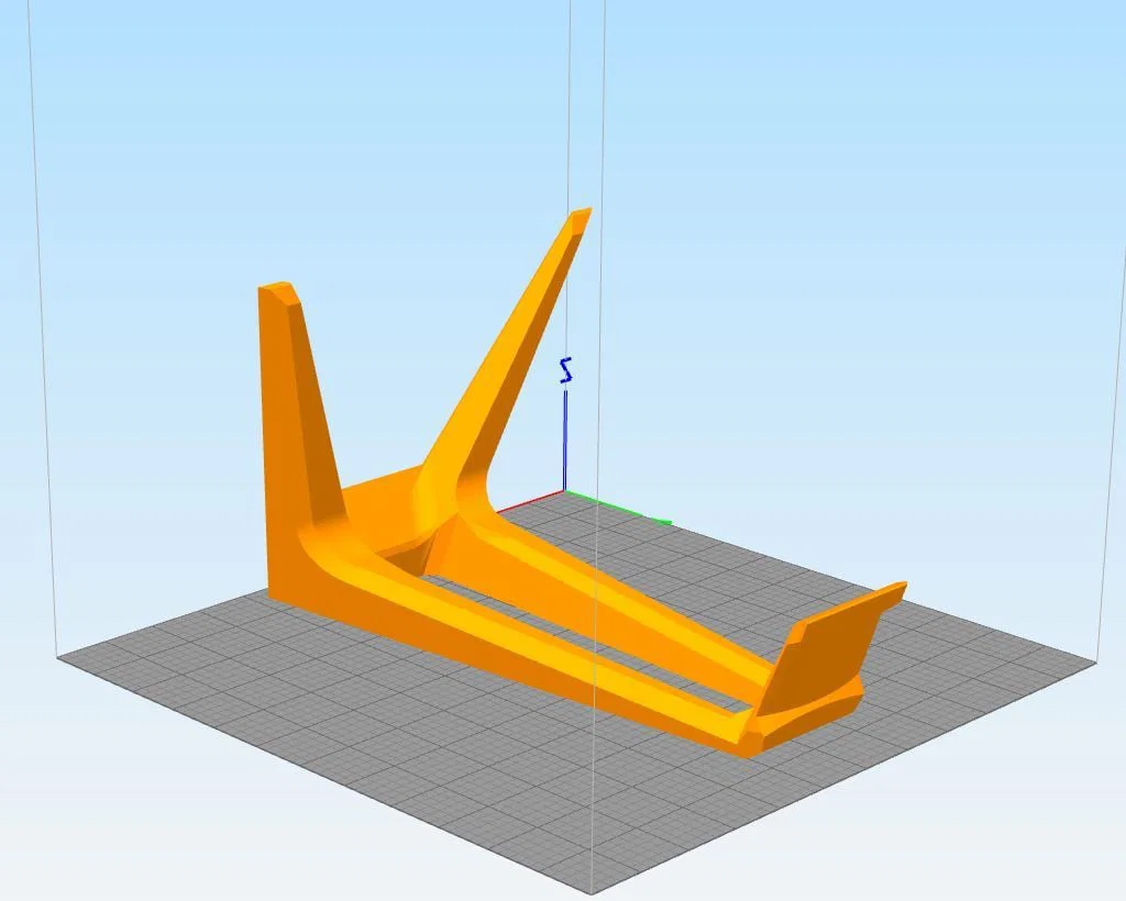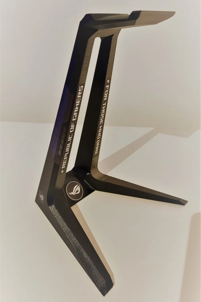 Thiết kế giá treo headset 1 mảnh, cao khoảng 250 mm. Khuyến nghị máy in khổ 300 x 300 mm. In bằng PLA, infill 25%, độ phân giải 0.1–0.2 và không cần supports/rafts.