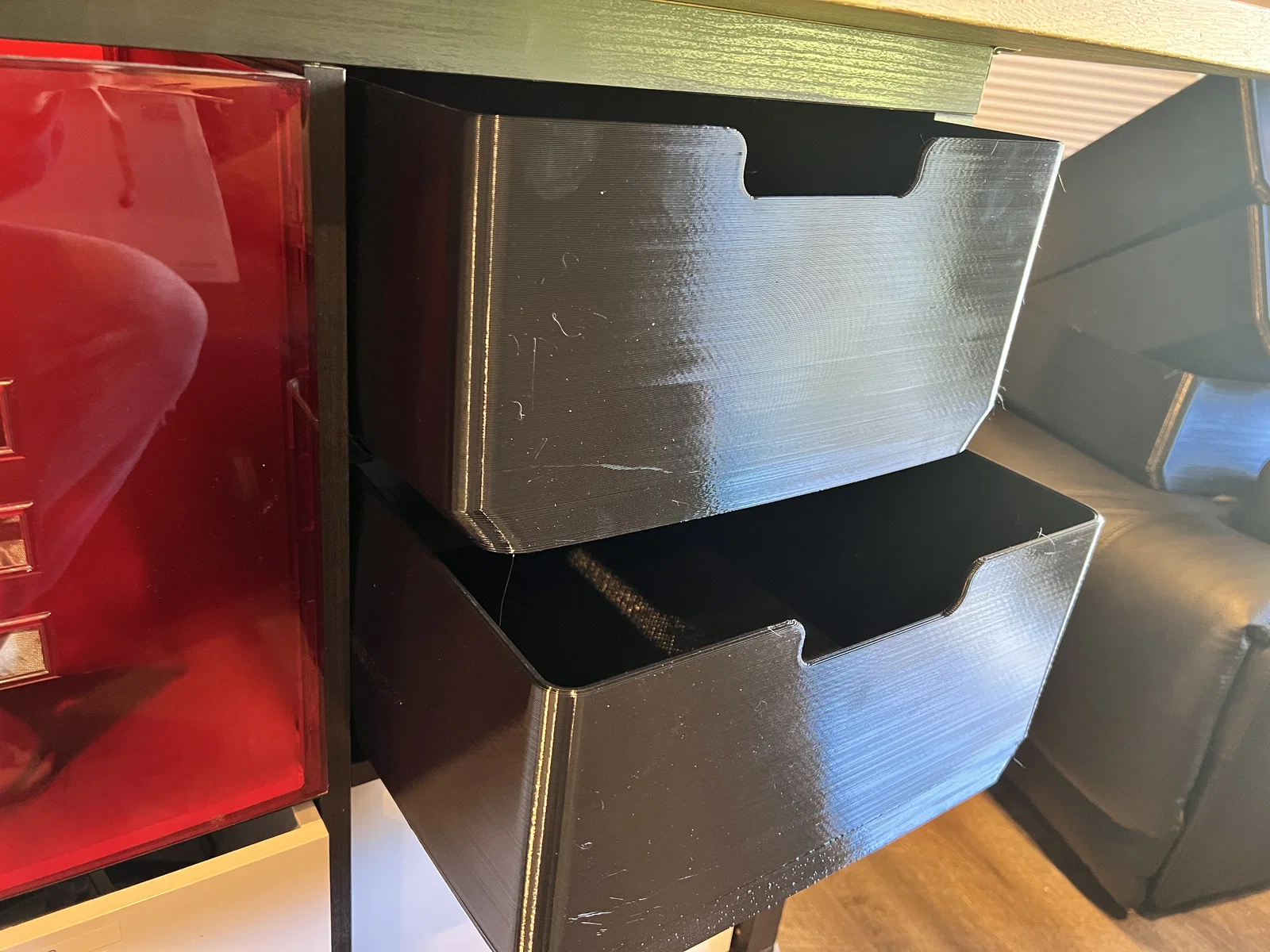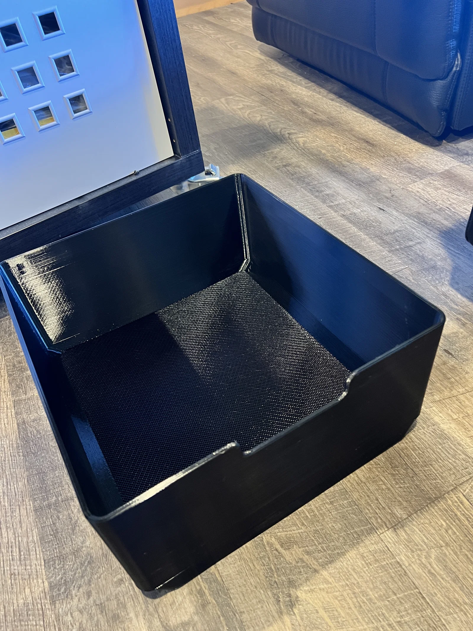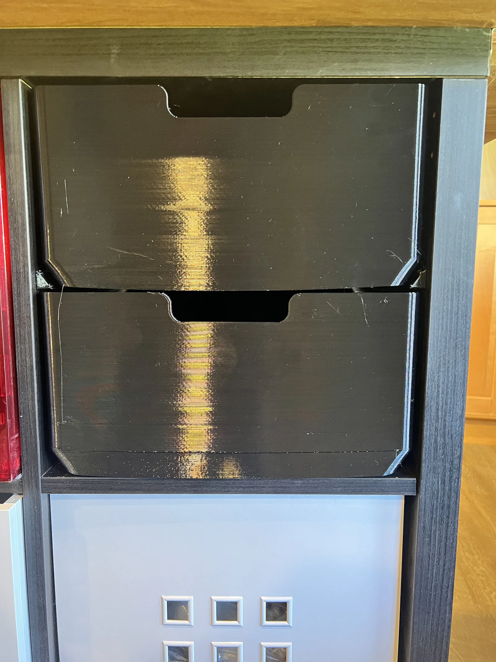 Hồi tháng trước, lúc đi dạo trong IKEA kiếm ý tưởng chung với bạn, mình mới để ý là mấy ô kệ KALLAX mà ai cũng biết, cũng xài, cũng mê… lại thiếu một lựa chọn ngăn kéo đôi thật sự hiệu quả. Đúng là họ có bán ngăn kéo cho KALLAX, nhưng tính thêm bộ ray trượt và cái thành hông mỏng dính “bé xíu” của nó thì mới thấy thể tích dùng được chỉ còn một phần nhỏ thôi. Mình thấy đây là cơ hội ngon để tận dụng build volume của Prusa XL.