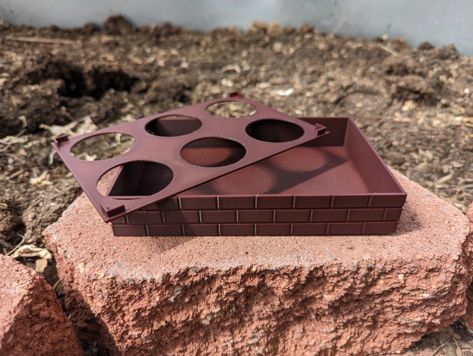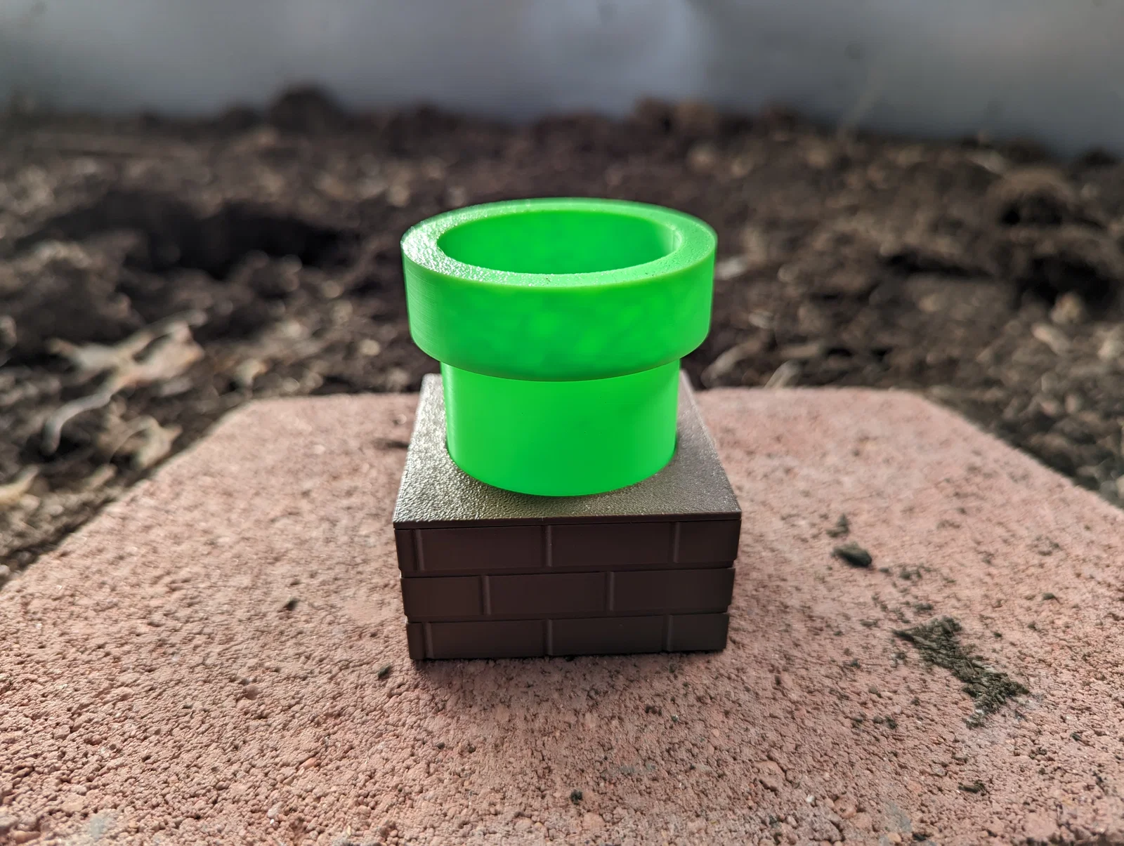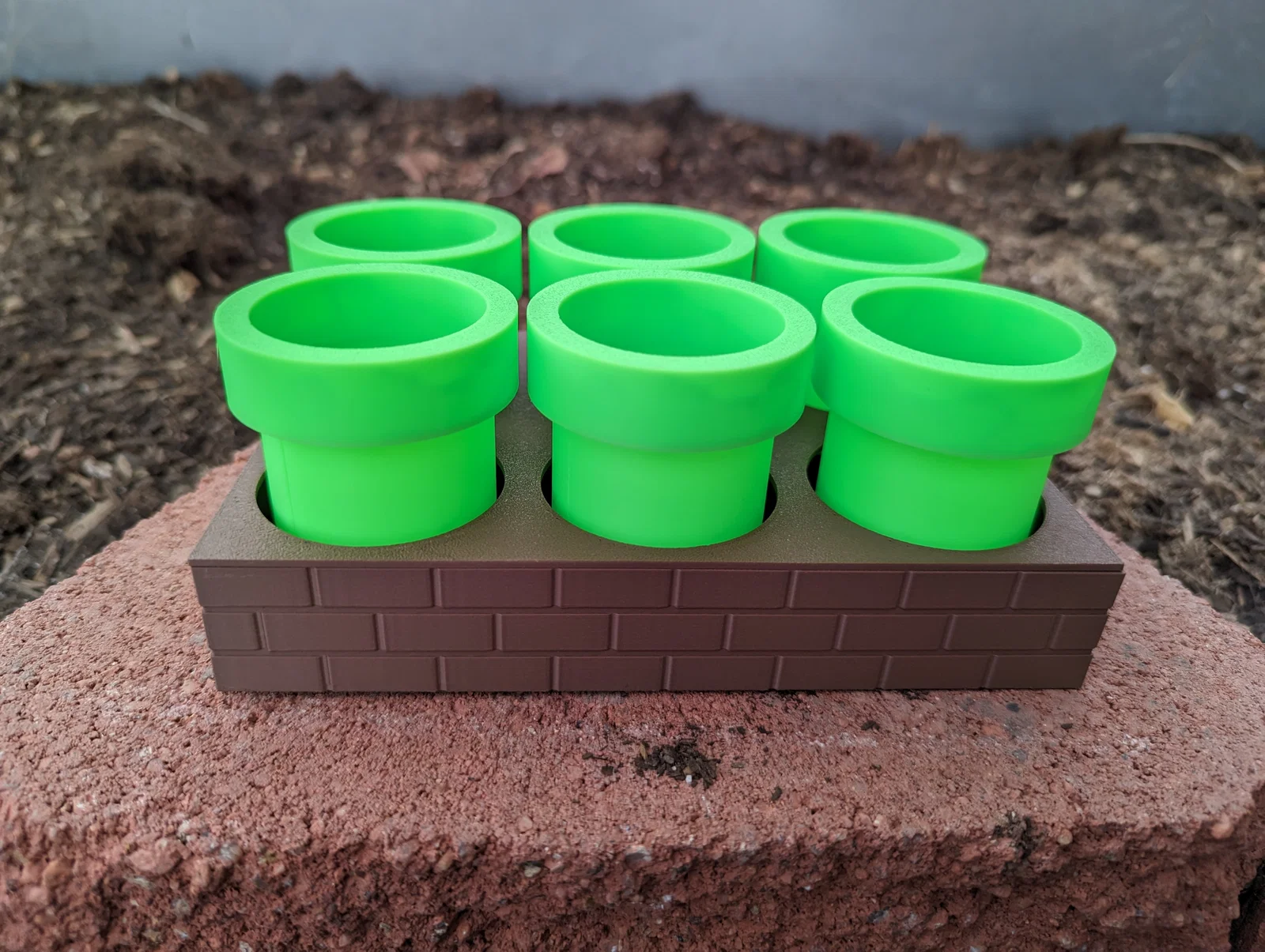 Khay ươm hạt/chậu ươm theo chủ đề Mario, thiết kế self watering giúp cây con luôn đủ ẩm mà không cần tưới mỗi ngày. Dùng bông gòn hoặc vật liệu wicking ở đáy, giữ mực nước dưới chậu để mao dẫn hoạt động ổn định.