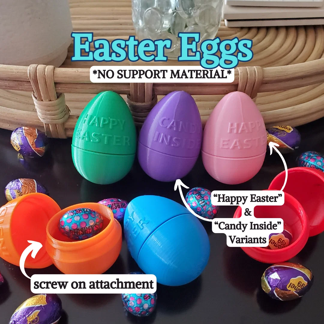 Mẫu Best Screw Easter Egg dễ in, không cần support, tải về là in dùng liền. Có nhiều kiểu nắp: “Happy Easter”, “Candy Inside” hoặc nắp trơn. Rất đáng thêm vào bộ sưu tập trứng Phục Sinh để giấu kẹo mùa lễ.