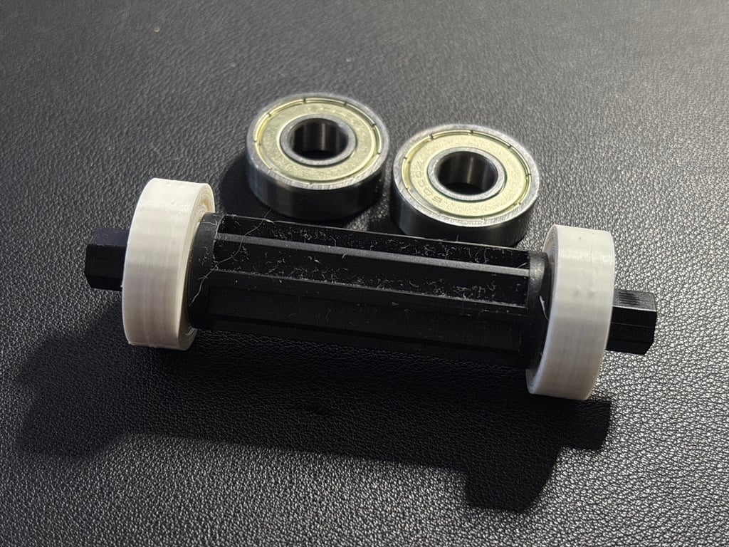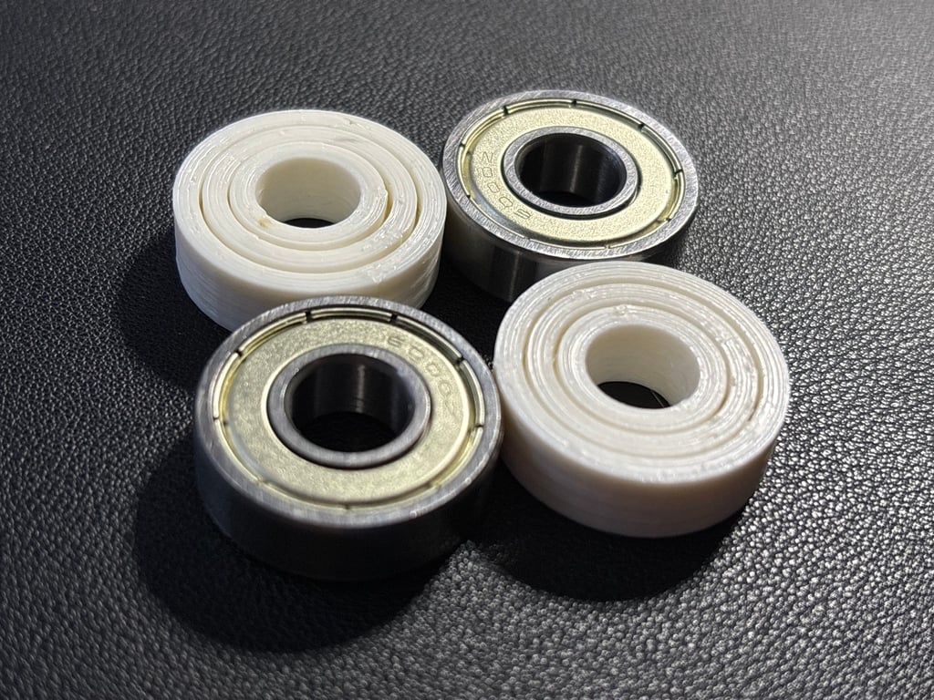 Thay mấy vòng bi (ball bearing) quay quá trơn bằng các friction bearing print-in-place này. Có thể tra dầu/mỡ nếu loại nhựa bạn in chịu được. Mình in bằng ABS với chiều cao lớp (layer height) 0.2 mm. Ở đây có sẵn 3 mức khe hở (gap tolerance) tuỳ theo độ chuẩn của flow và căn chỉnh z offset của bạn. Ngoài ra còn kèm file nguồn FreeCAD fully parametric.