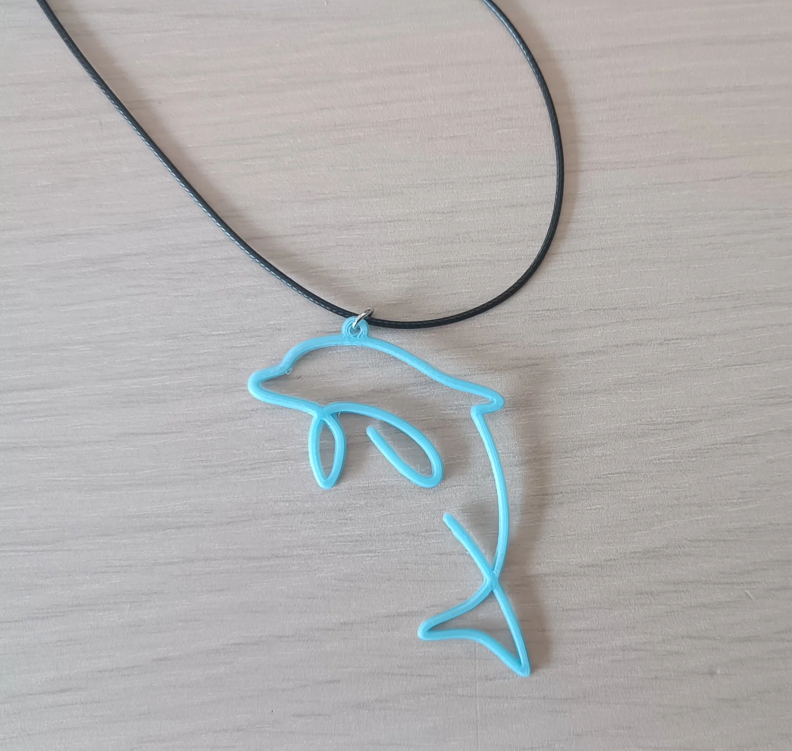 Mẫu One Line Art: Dolphin Necklace dùng làm vòng cổ hoặc cũng có thể làm bông tai. Thiết kế nét vẽ một đường, hợp làm phụ kiện trang sức hoặc quà tặng cho phái nữ; cần khoen kim loại để lắp ráp.