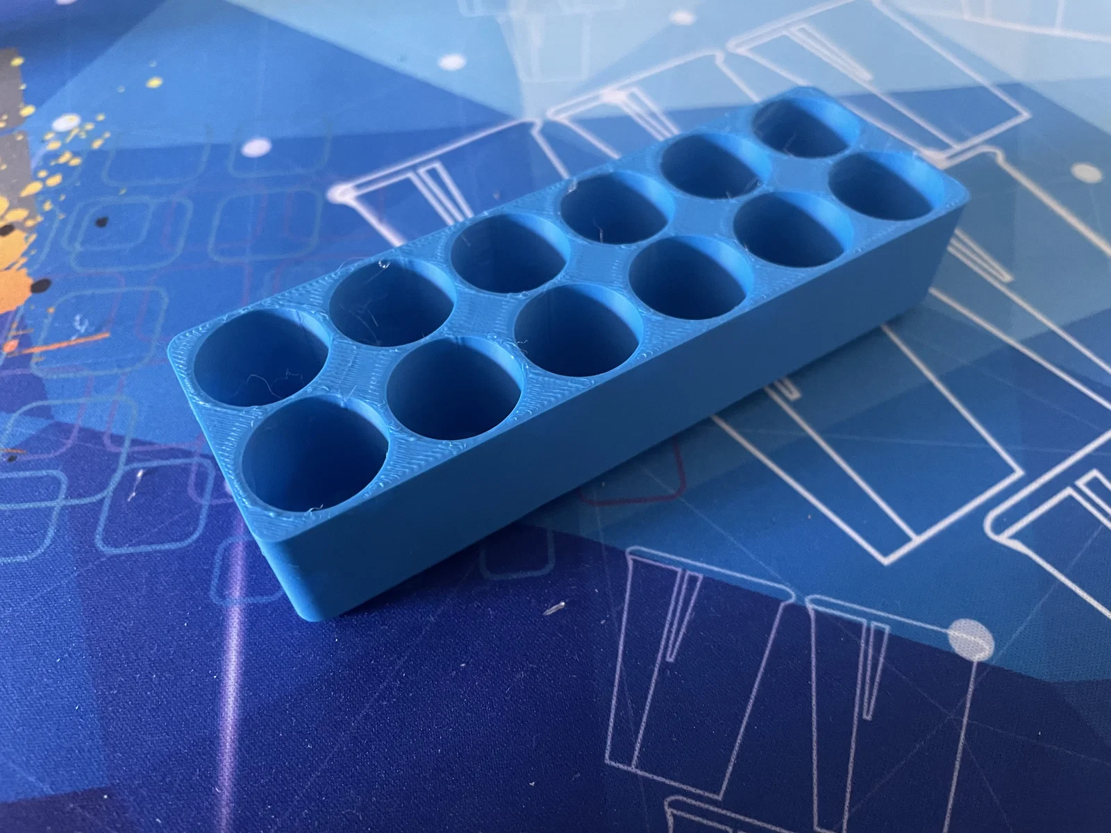 Bộ sưu tập khay/giá giữ pin 18650 theo chuẩn Gridfinity, lưu trữ pin theo chiều dọc. Có lỗ gắn nam châm, không có stackable lips, lỗ pin 19mm. Nhiều kích thước từ 1x1x4 đến 4x4x4, kèm file test kiểm tra độ vừa.