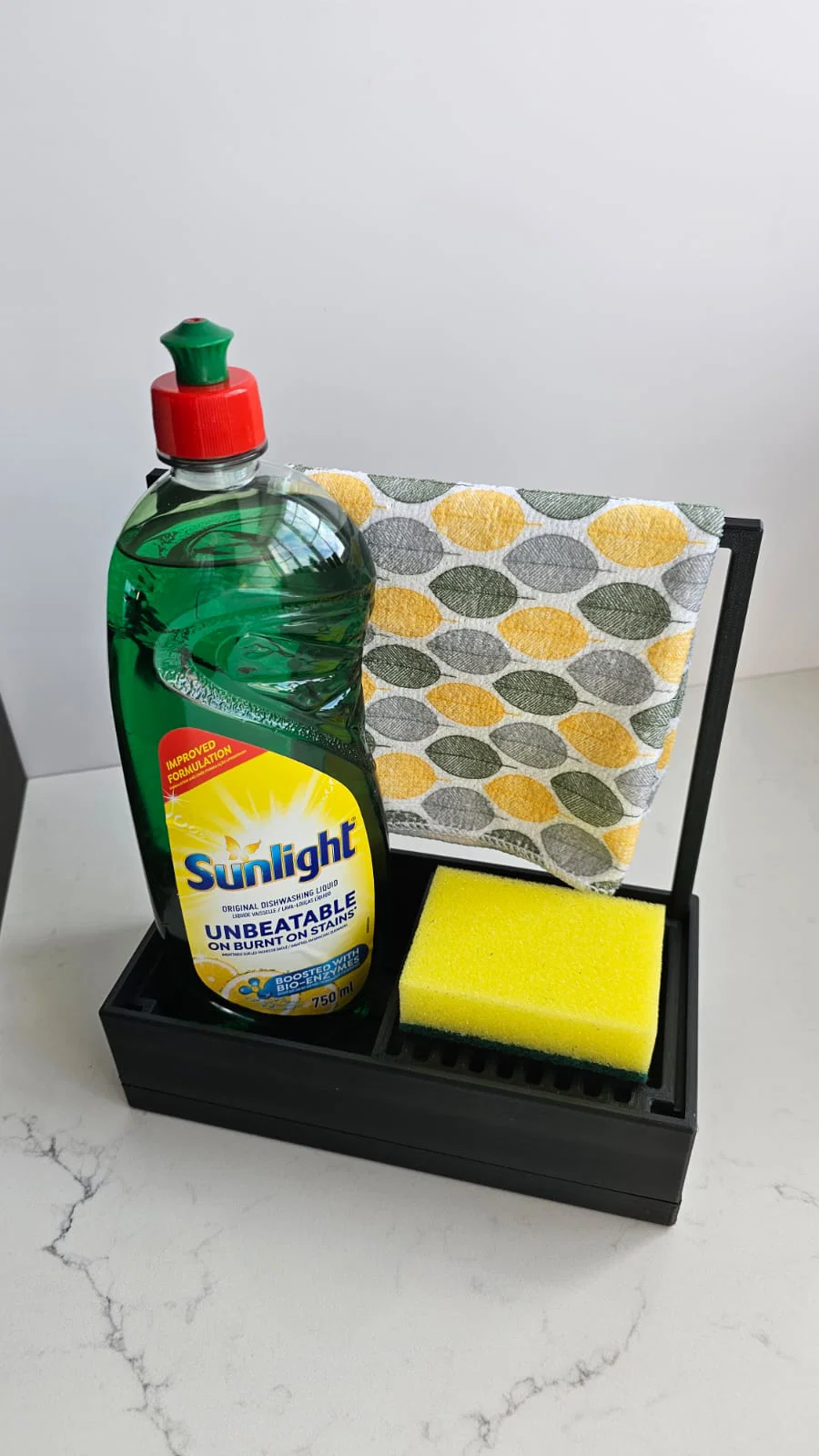 Caddy bồn rửa bếp dạng module gồm khay, hộp, nhiều kích cỡ grid và nhiều biến thể beam/peg. File cadquery parametric cho phép tùy chỉnh kích thước; không cần supports, dùng gyroid để hạn chế warping.