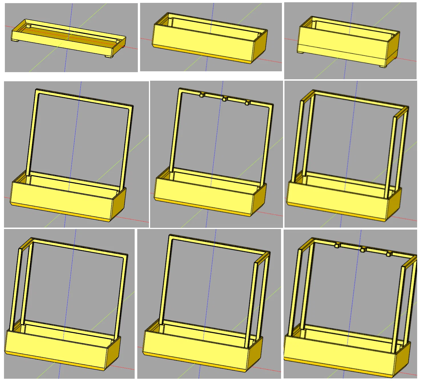 2024-04-14: bản chỉnh sửa, thêm nhiều biến thể hơn: khay dài hơn và thêm nhiều chốt trên thanh sau.