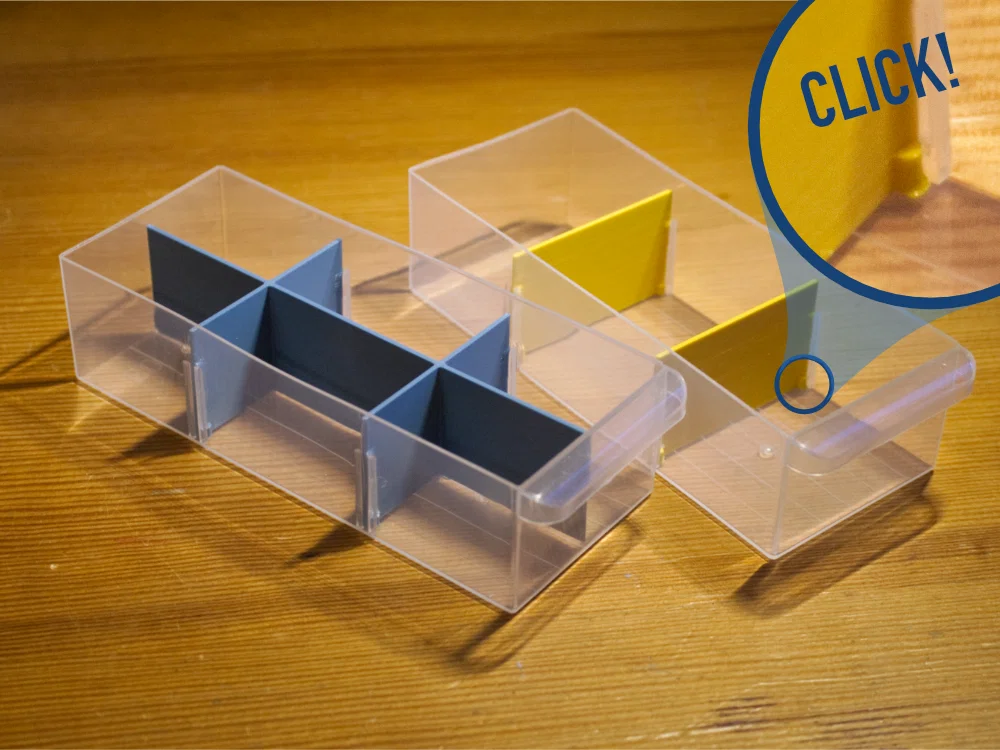 Hai mẫu vách ngăn khác nhau cho các ngăn kéo nhỏ của hộp STANLEY organizer này: https://www.stanleyworks.de/produkt/1-93-980/kleinteilemagazin-mit-30-schubladen (model 1-93-980), đôi khi cũng được gắn thương hiệu CRAFTSMAN.