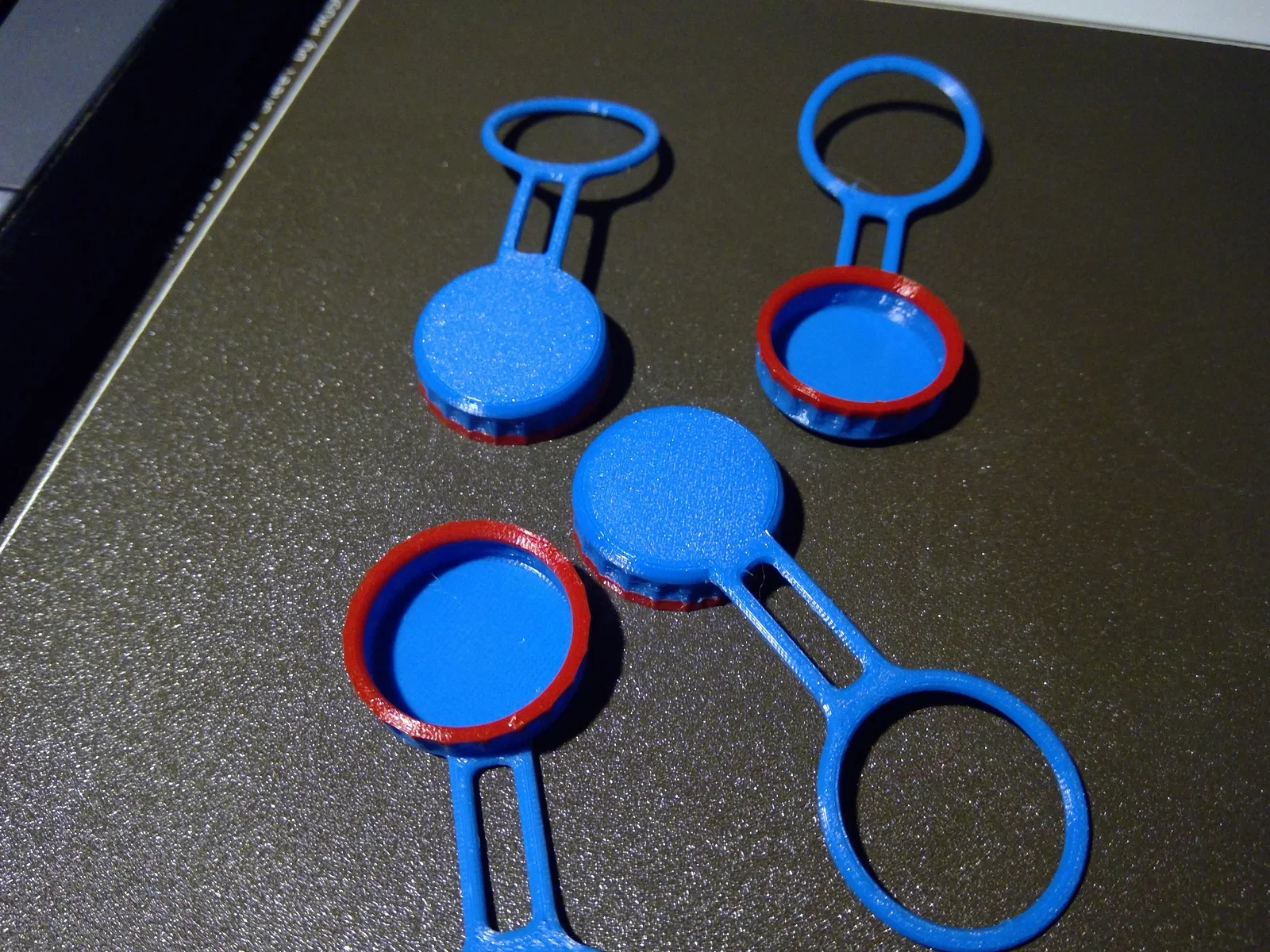 Fillamentum Flexfill 98A cho phần trên… vì lý do cảm giác cầm nắm. Cảm giác bấm “chụp” cái nắp lên miệng chai đã lắm :) (mình nghĩ phần trên nên dùng vật liệu cứng hơn phần dưới; 98A là giải pháp ngon nhất và in cũng khá dễ… nếu bạn có 95A thì cũng có thể dùng 95A.)