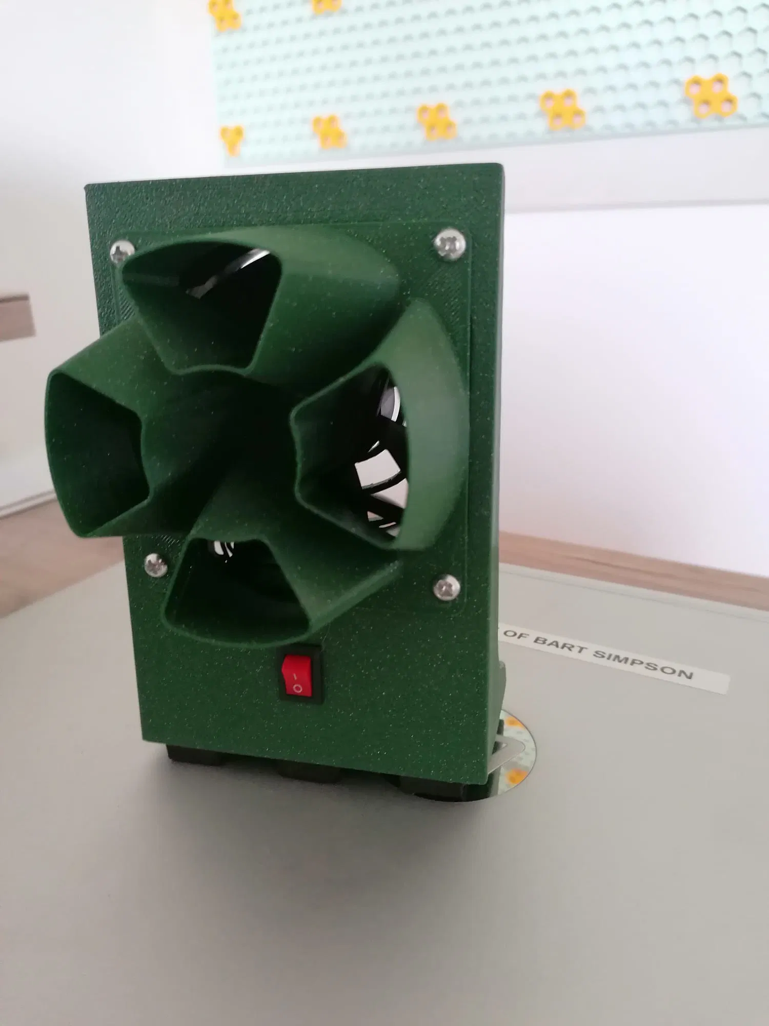 Bản chỉnh sửa chân đế máy tính cho quạt PC 80mm, có thêm lỗ cắm công tắc và adapter nguồn. Thích hợp để kết hợp với vỏ quạt và lưới quạt. In bằng PLA màu xanh lá cây.
