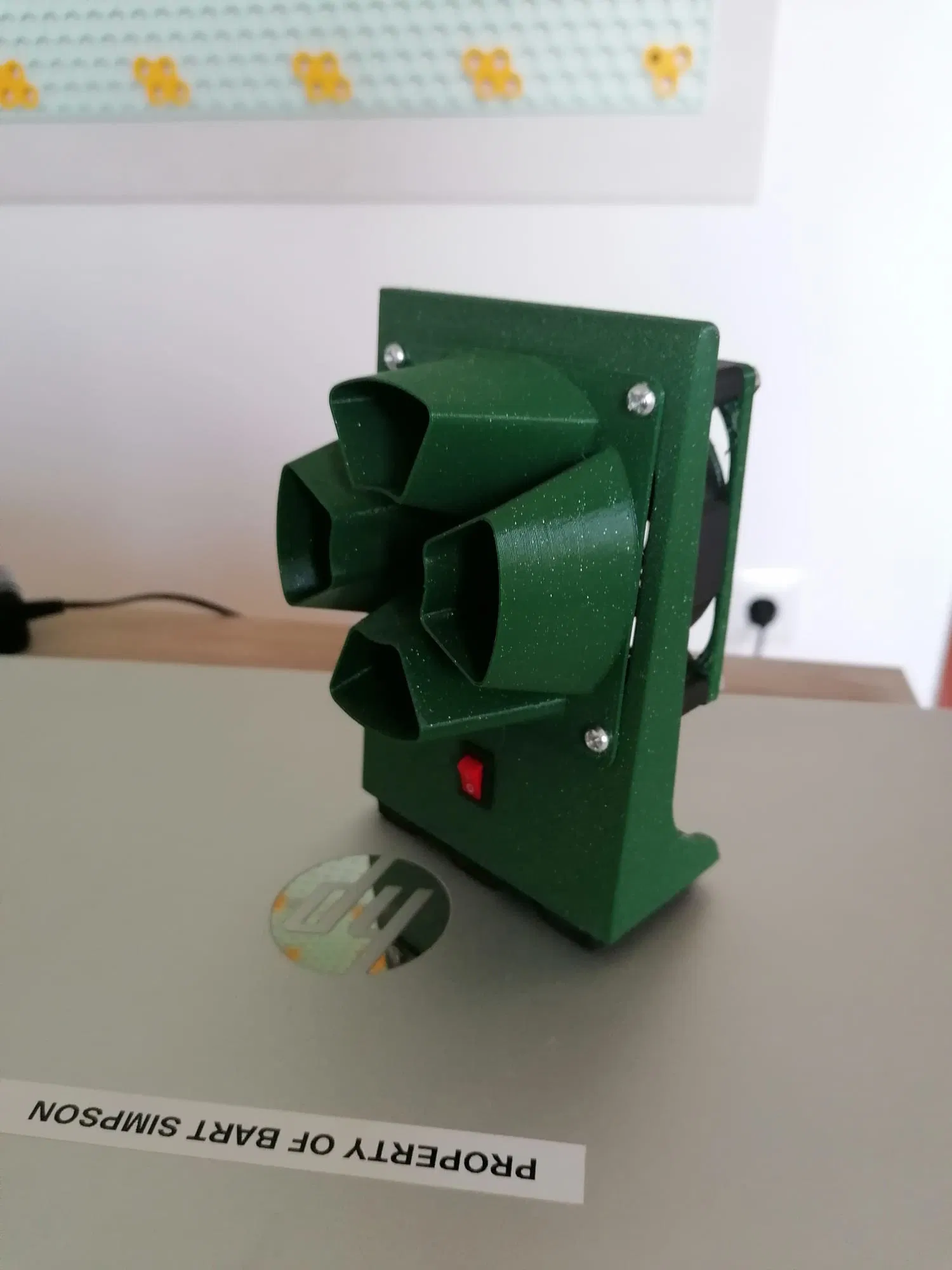 Dựa trên mẫu gốc của @NUeB, tôi đã làm một bản chỉnh sửa có thêm lỗ cắm công tắc và một lỗ phía sau để cắm adapter nguồn 12V.