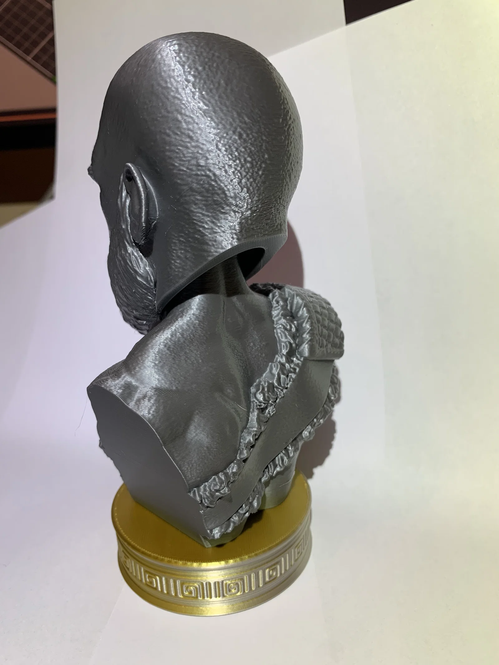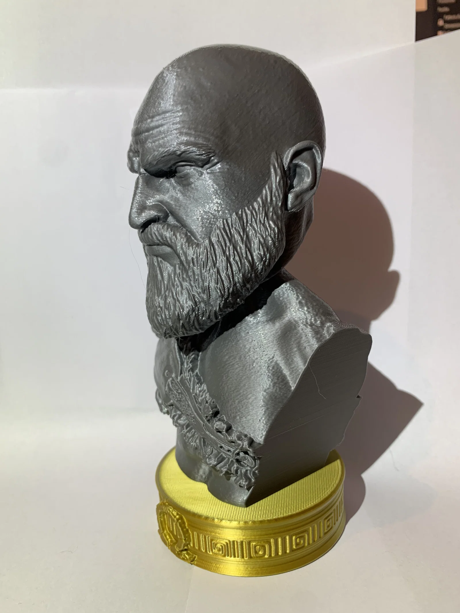 Mẫu KRATOS BUST BOBBLEHEAD: tượng bust Kratos dạng bobblehead, nhìn ngầu mà vẫn dễ thương. Khuyến nghị in PLA, nozzle 0.4 mm, layer 0.2 mm, infill 10%, dùng support và dán phần thân vào đế.