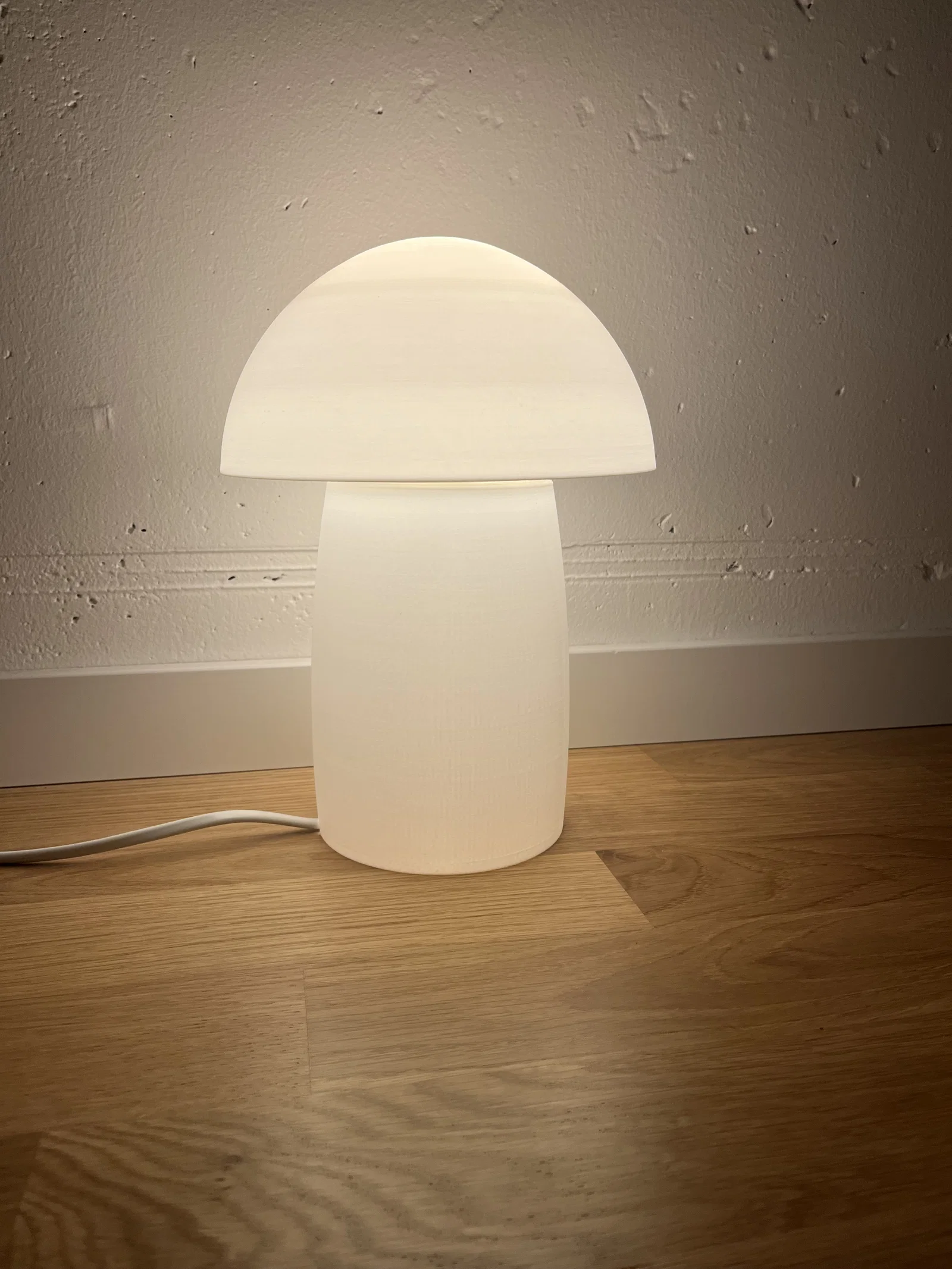 Mẫu đèn nấm phong cách Scandinavian, in 3D gồm 2 phần: chụp (dome) và đế. Chụp có thể in không cần support. Đế tương thích đui E14-LED; hai phần vặn vào nhau bằng ren.