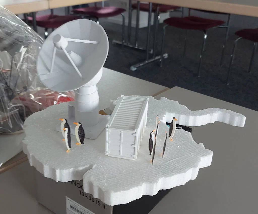 Mẫu antenna này được dựng theo một antenna thật đang đặt ở Nam Cực. Điểm đặc biệt là các trục của antenna hoạt động thông qua hai nửa bán cầu (trục bị uốn). Thiết kế này là độc nhất trên thế giới và antenna này chỉ tồn tại đúng một cái. Nó được lắp đặt ở Nam Cực vào năm 1991 và từ đó đến nay luôn do DLR vận hành. Bạn có thể xem thông tin chi tiết về hệ thống antenna và nguyên lý hoạt động tại đây:
