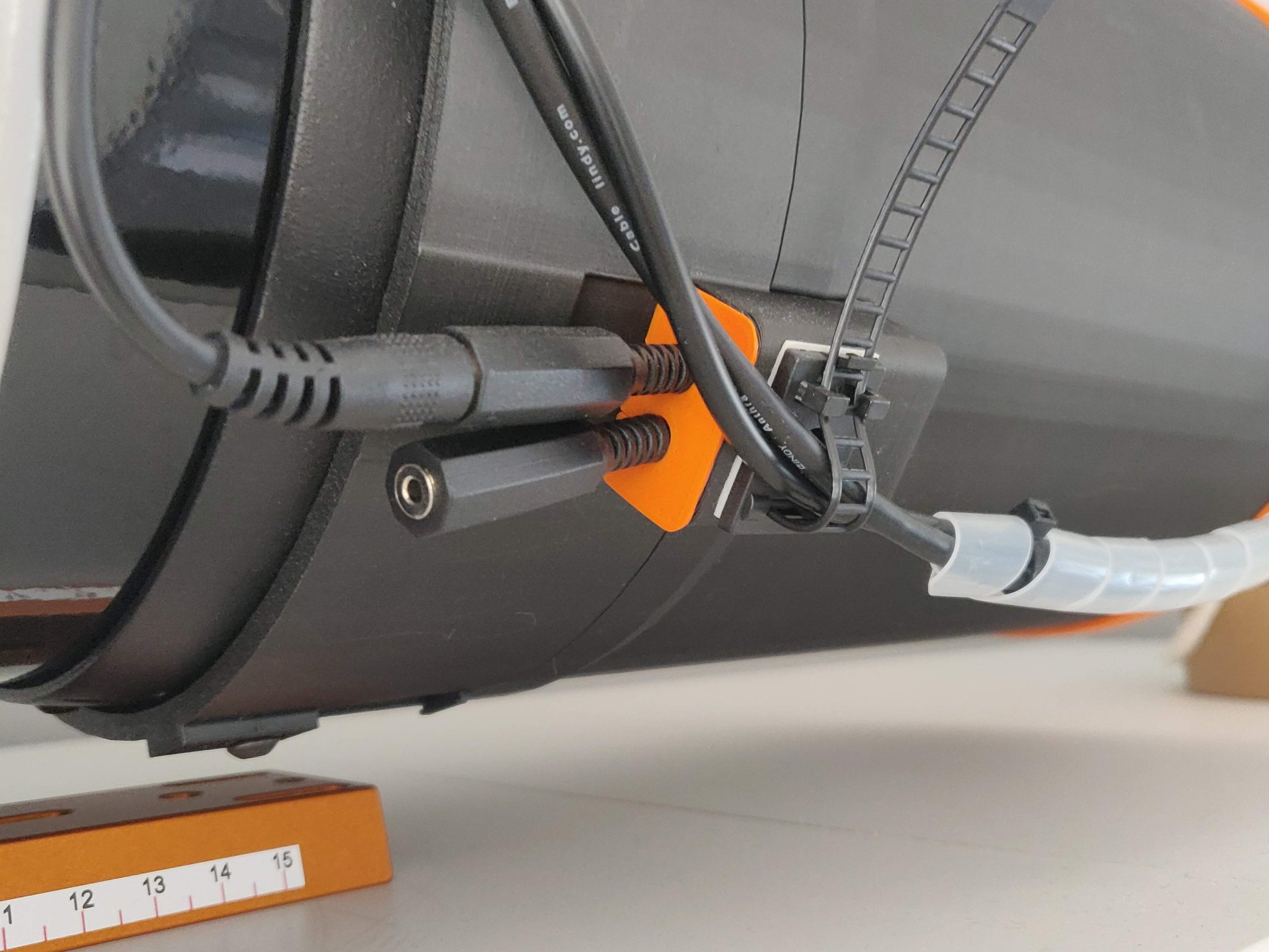 Hệ thống chắn sương này được thiết kế để dễ dàng truy cập vào khối phía trước khi sử dụng hyperstar với C6 SCT. Tôi đã thêm các tệp cho một mặt nạ bahtinov phù hợp với phía trước của chắn sương. Thiết kế khác của tôi về một mặt nạ tri-bahtinov cũng hoạt động với hệ thống này. Cơ sở được gắn vào khối phía trước của kính thiên văn bằng 4 bu lông và đai ốc M4 (hoặc bất kỳ bu lông nào bạn làm cho phù hợp ở đó). Các bu lông chỉ đơn giản là đè vào khối và nếu bạn không muốn có dấu vết nào trên đó, hãy sử dụng một số băng dính hoặc tương tự giữa các bu lông và kim loại của khối phía trước. Chắn sương, cơ sở và mặt dưới của bộ định tuyến cáp nên được dán bằng giấy dán tự dính. Tôi khuyên bạn nên sử dụng màu đen của TPU cho bộ chặn ánh sáng, tôi đã sử dụng màu cam và nó sẽ cho phép một số ánh sáng đi qua, điều này không chứng minh là vấn đề đối với tôi. Mảnh này có độ vừa chặt và có thể khó khăn khi cố định. Hãy cẩn thận để không làm hỏng các cáp. Thử nghiệm với độ đầy để có một chút độ đàn hồi và nó sẽ vừa vặn. Hầu hết các thiết kế là những sáng tạo nguyên bản của tôi. Bộ định tuyến cáp hyperstar C6 là một bản remix của một thiết kế được tìm thấy trên thingiverse:
