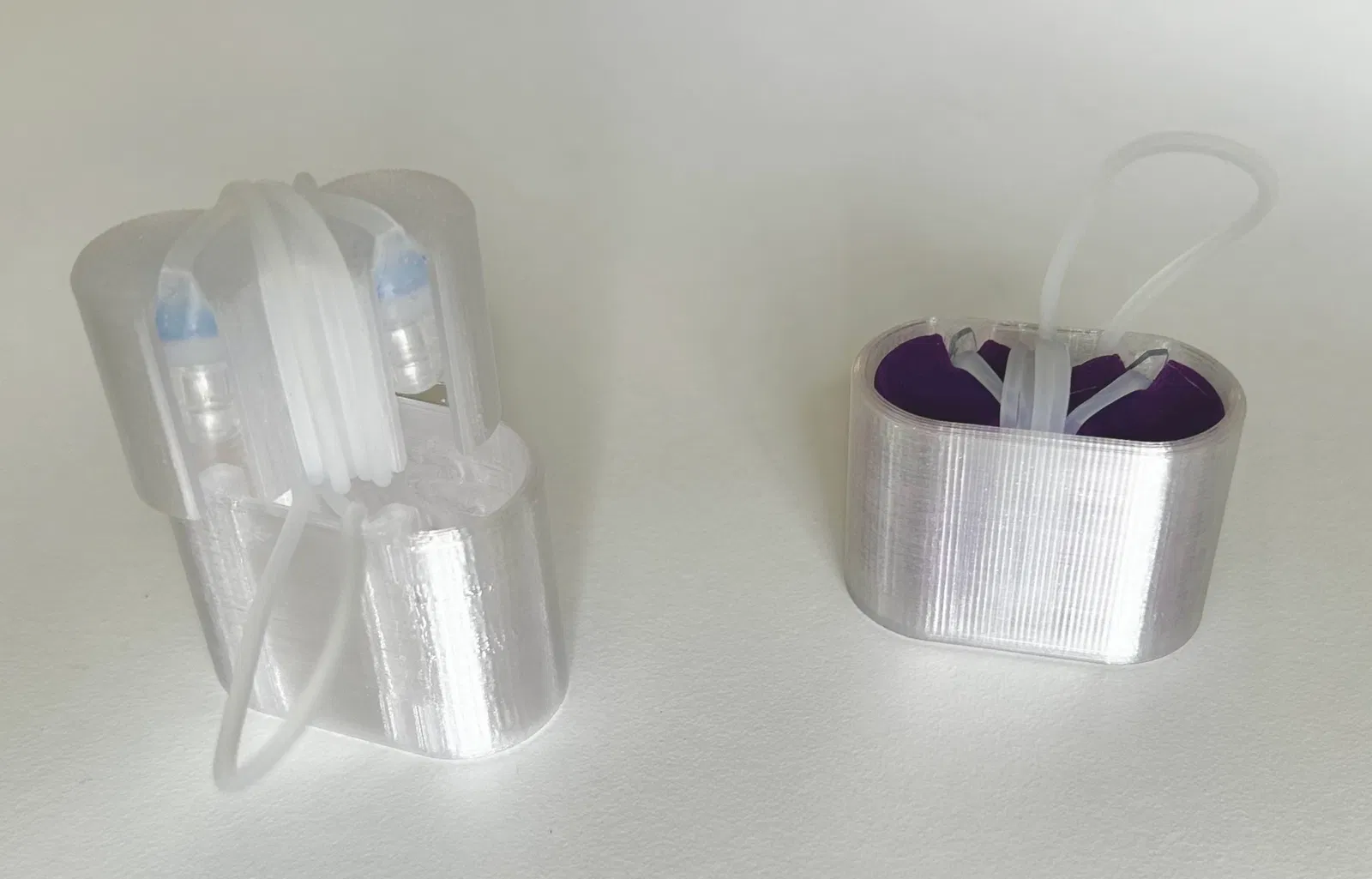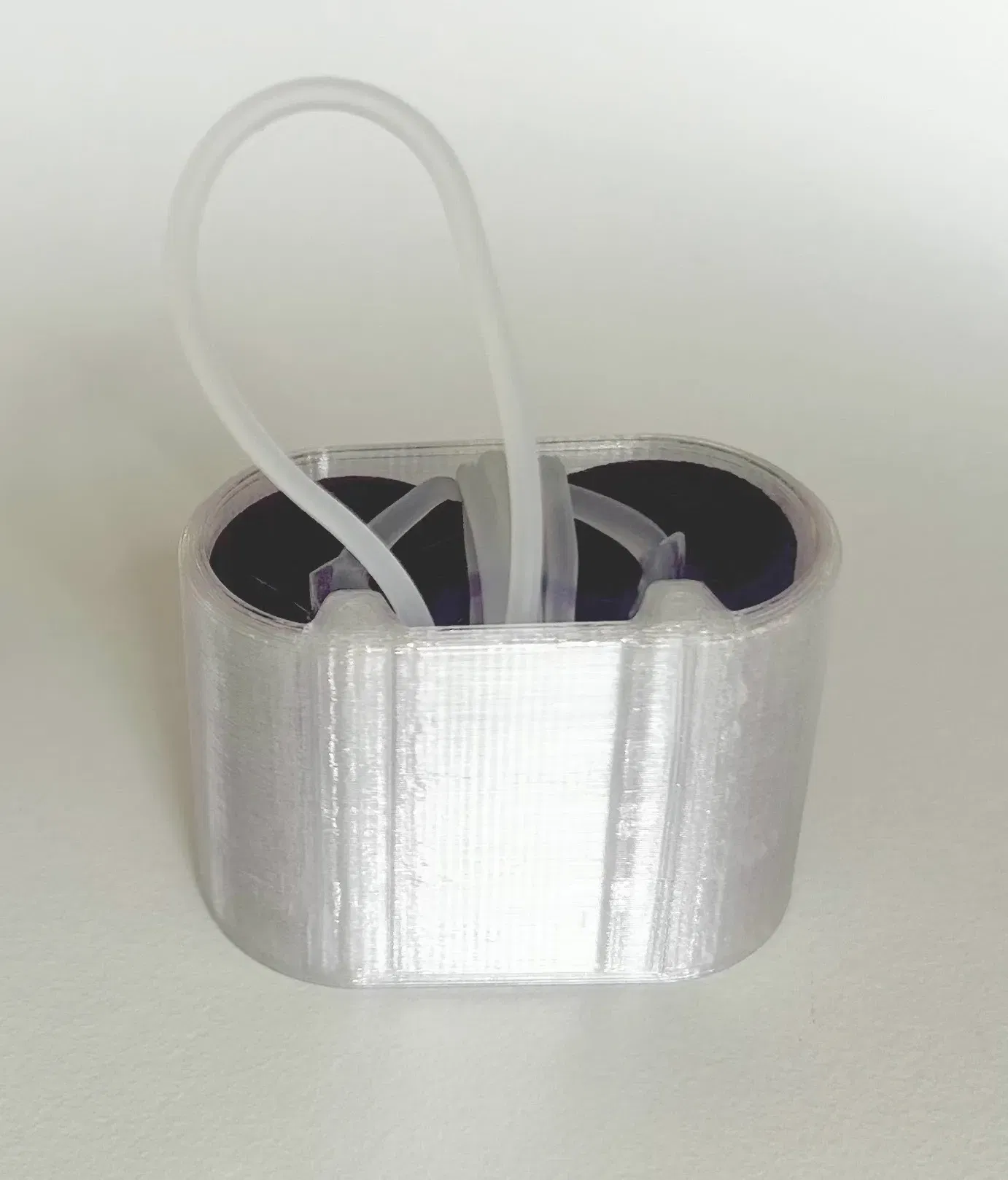 In bằng cả PLA và PETG với vòi phun 0.4mm, chiều cao lớp 0.2, độ đầy 15% và không có hỗ trợ - các tham số này thực sự không quan trọng vì chính dây đeo cung cấp độ vừa vặn chặt chẽ.