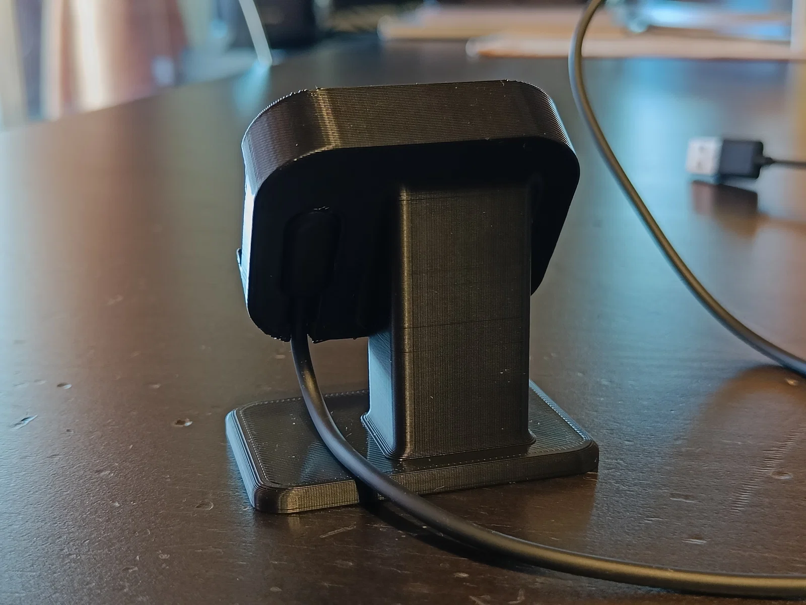 Dock sạc cho CMF Watch Pro giúp đặt đồng hồ nằm ngang để dễ giấu dây đeo ra phía sau, tổng thể gọn và ngắn hơn. Có bản không kèm rãnh dẫn dây để bạn tùy cách đi cable. Khuyến nghị layer 0.12–0.2 và organic/tree supports.