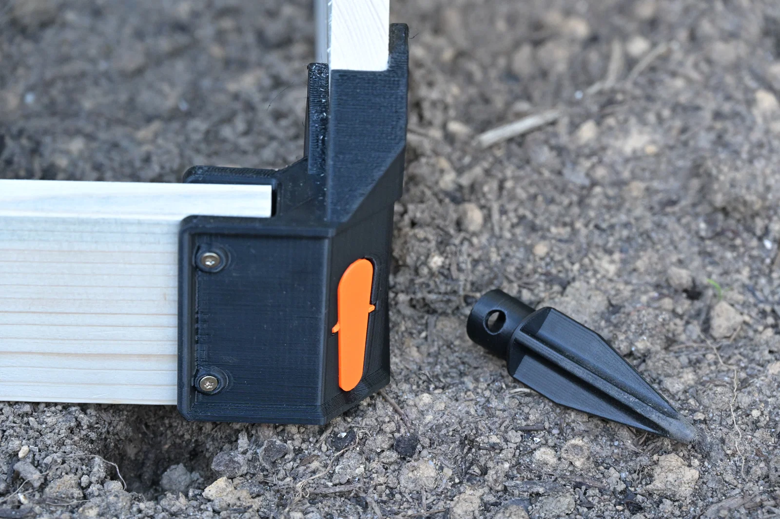 Độ dài của các tấm ván sẽ quyết định kích thước nhà kính của bạn. Các module góc sẽ nối các tấm ván thành một bộ khung. Bạn có thể chồng các khung lên nhau tùy ý. Các khung đơn lẻ được kết nối bằng cơ chế khóa gồm lò xo in 3D và cần gạt (nếu muốn thử nghiệm cơ chế này trước, bạn có thể in các linh kiện trong thư mục test).