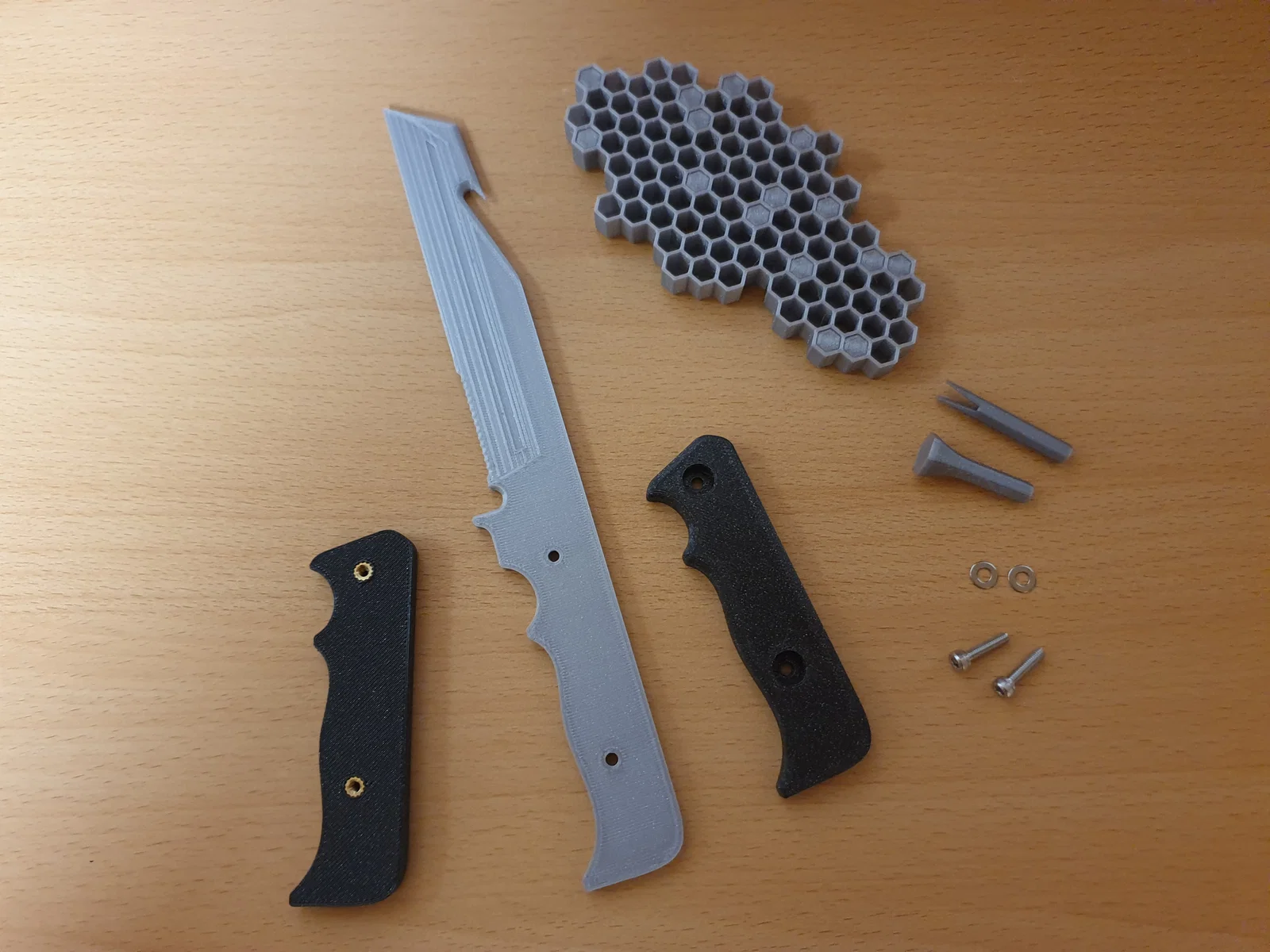 Mình dùng mẫu “Honeycomb key organizer” làm cái đế trưng cho ACB-90 vì họa tiết lục giác, cũng là một dạng camouflage pattern có trong BF4. Nếu bạn cần 2 cái chốt (pins) để giữ dao cố định trên đế thì cứ nhắn mình.