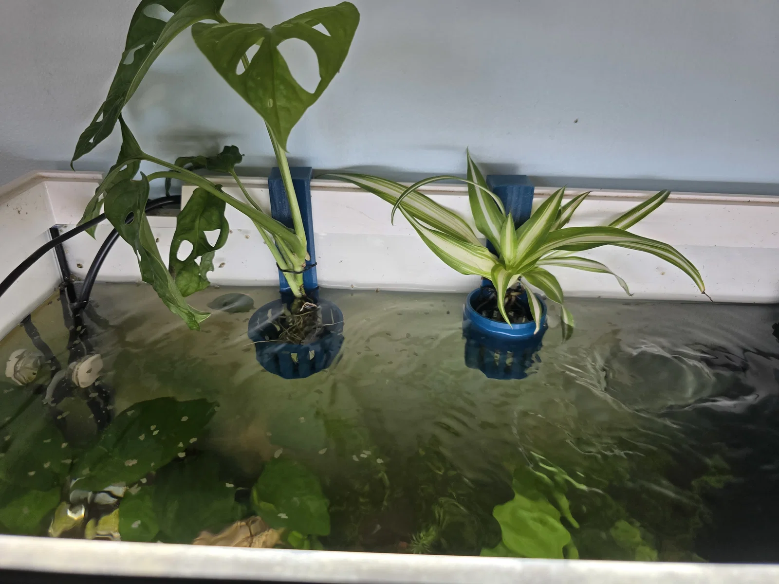 Bộ chậu/giá trồng cây đặt trên mép hồ cá cho aquaponics. Có 3 phiên bản tùy nhu cầu, móc tương thích hồ Juwel Rio. In top up và dùng supports ở phần móc để ra form đẹp, chắc chắn.
