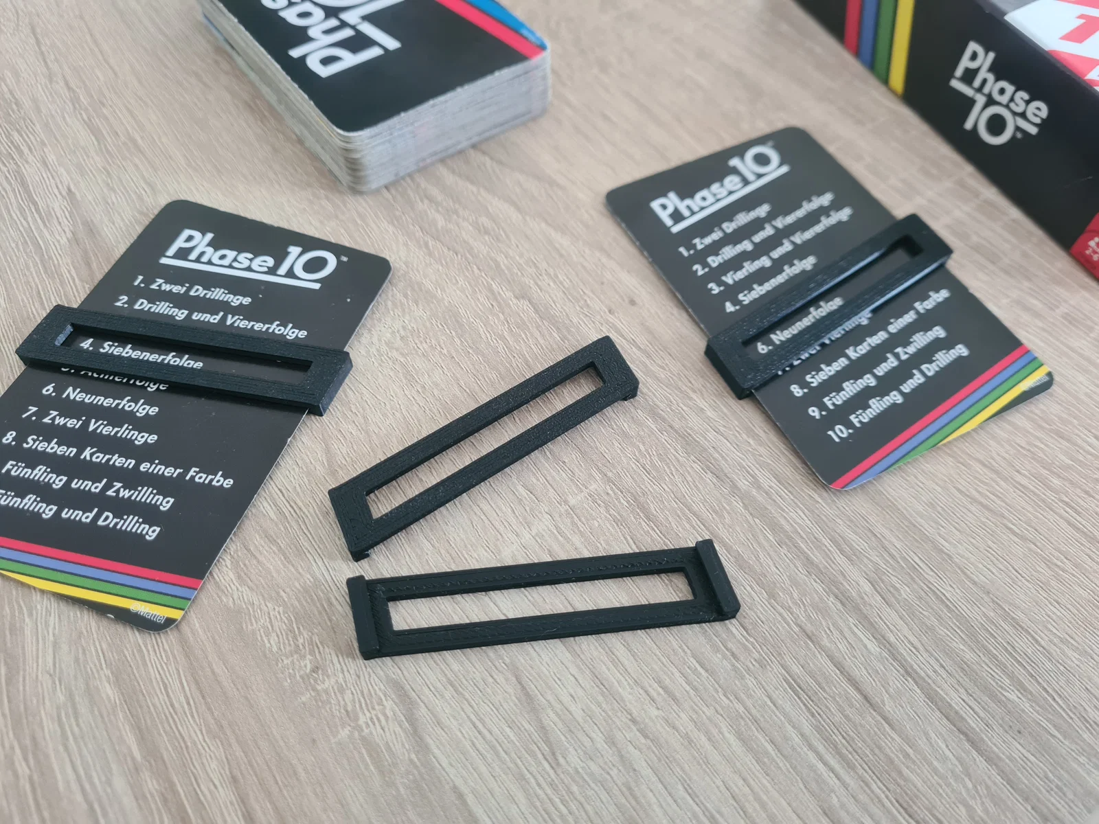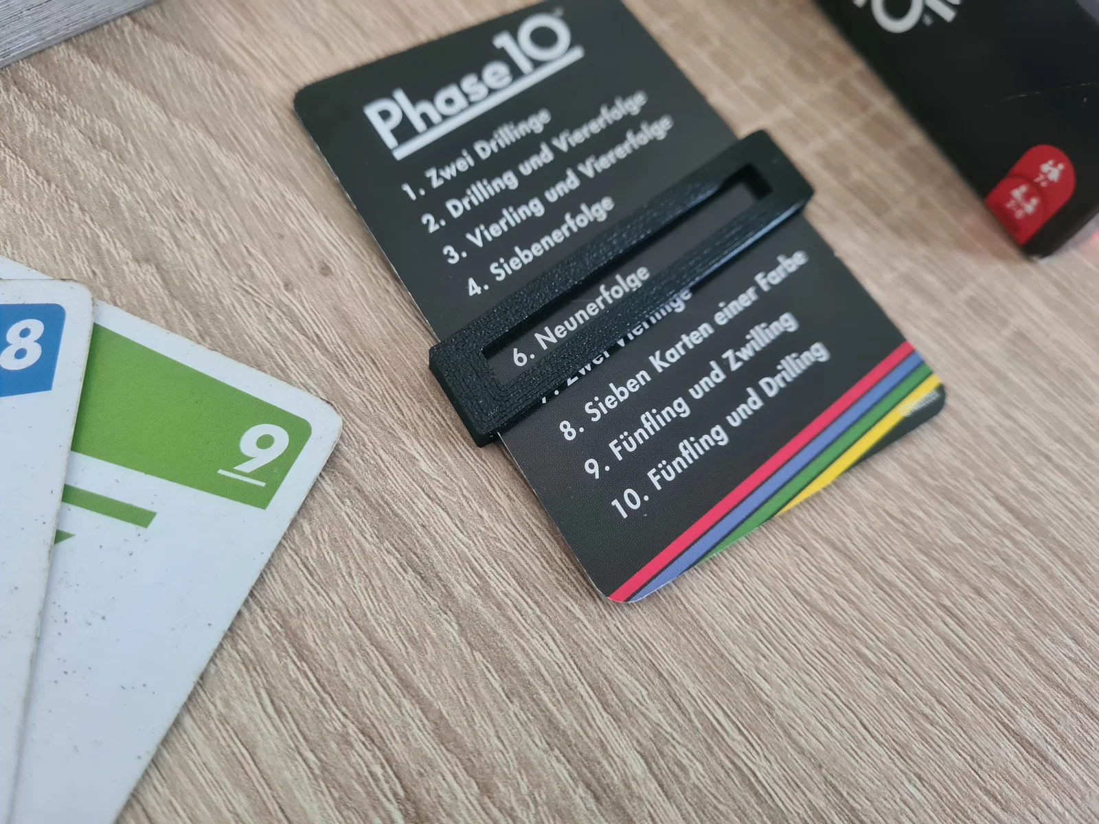 Indicator/marker dạng trượt cho game Phase 10, gắn trực tiếp lên thẻ bài để luôn biết bạn đang ở phase nào. Thiết kế đơn giản, dễ dùng; in với Layer Height 0.2mm và không cần supports.