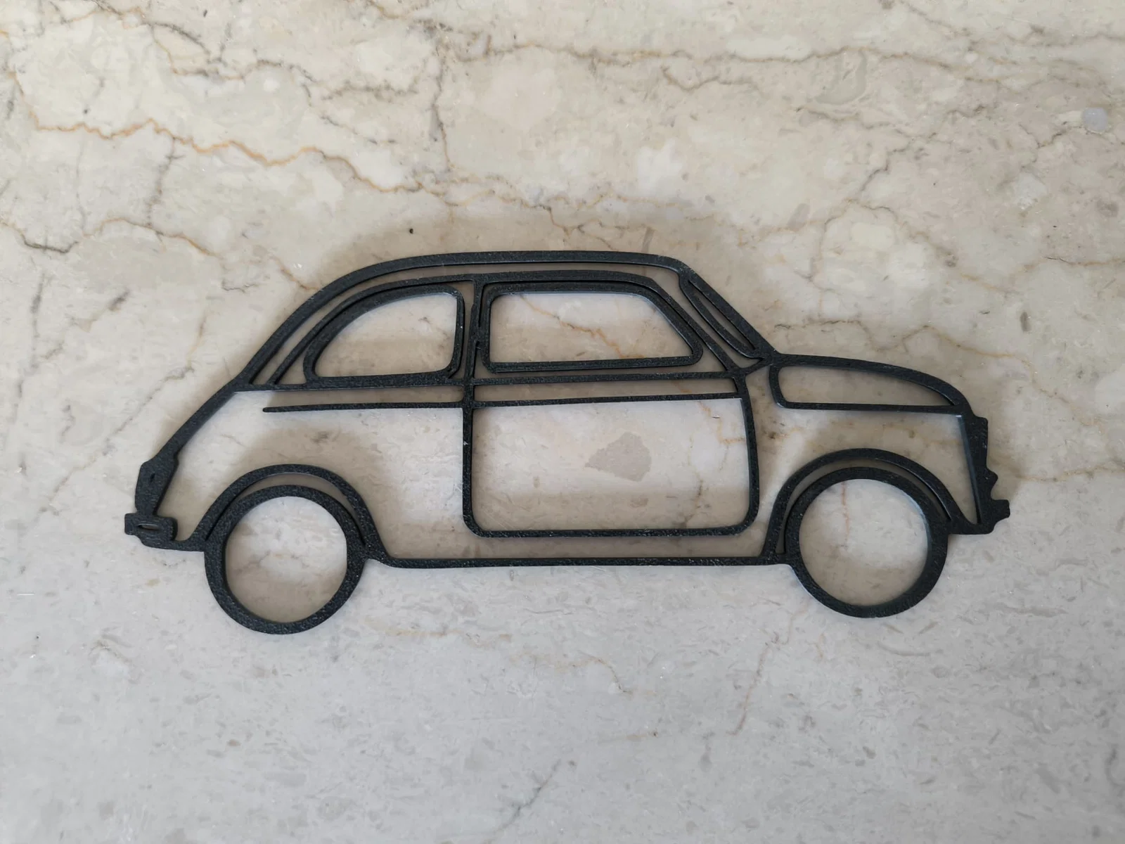 Nếu bạn là một người đam mê xe cổ, đặc biệt là dòng Fiat 500 huyền thoại từ những năm 60, thì đây chắc chắn là món đồ trang trí không thể thiếu trong bộ sưu tập của bạn. Mẫu thiết kế này tái hiện lại kiểu dáng mang tính biểu tượng của chiếc xe Fiat 500 dưới dạng một tác phẩm nghệ thuật treo tường tối giản. Với những đường nét thanh mảnh, mô hình này không chỉ thể hiện gu thẩm mỹ tinh tế mà còn mang đến vẻ đẹp hoài cổ, độc đáo cho không gian sống hay góc làm việc của bất kỳ tín đồ mê xe nào.