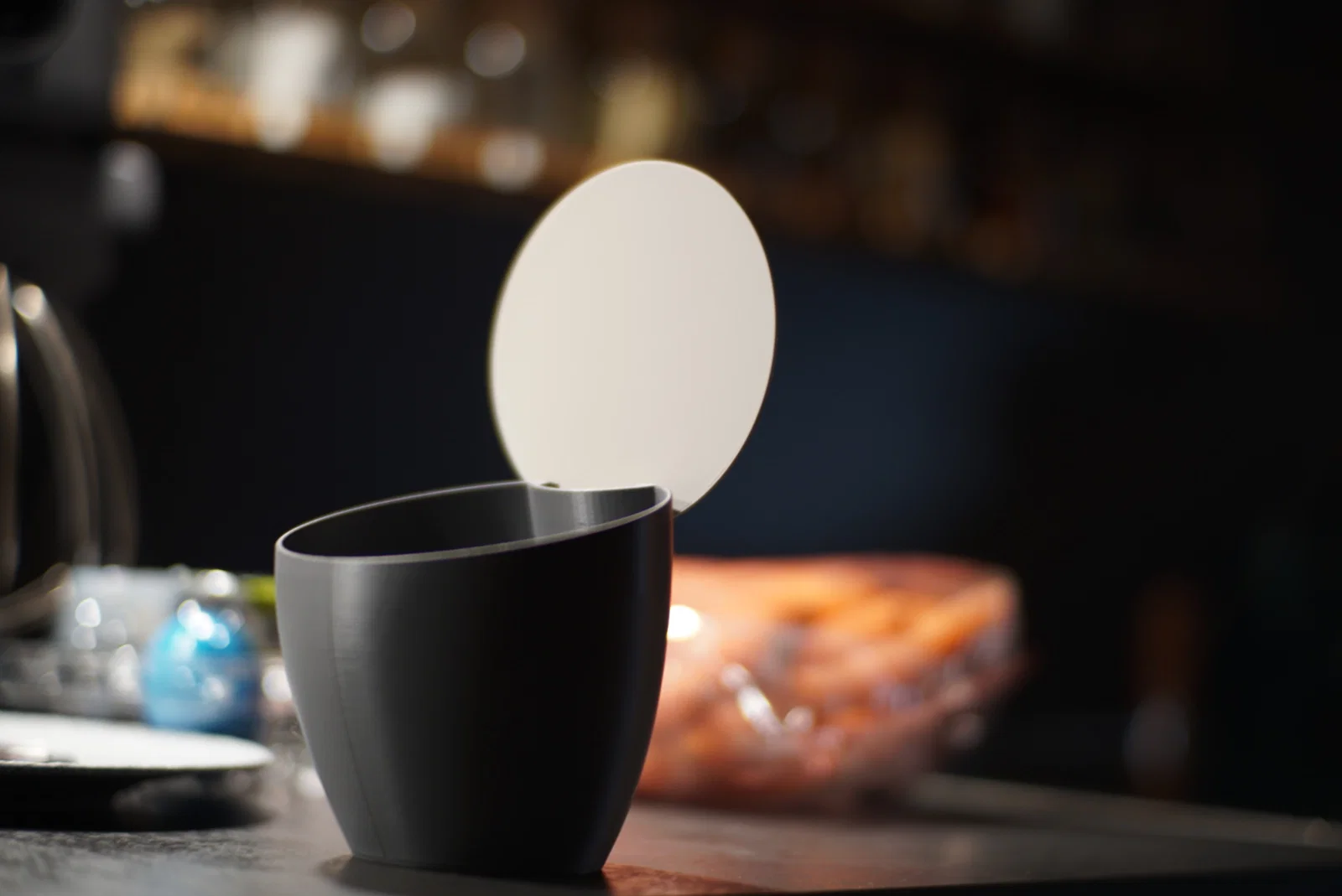 Một chiếc thùng rác mini cực kỳ tiện để đặt trên mặt bếp. Chiếm rất ít diện tích, miệng lớn, không cần dùng túi rác, dễ nhấc lên và dễ vệ sinh. Rất hợp để bỏ coffee pads, giấy, rác hữu cơ hoặc các loại rác khác.