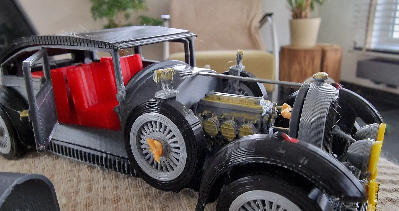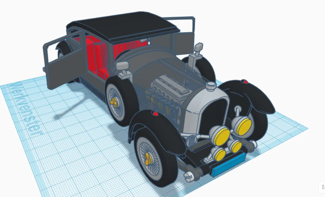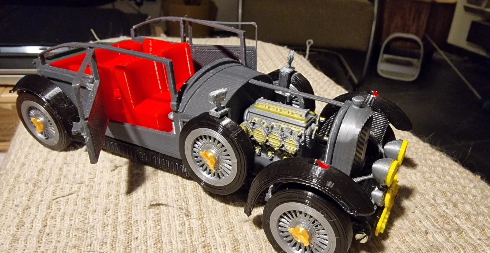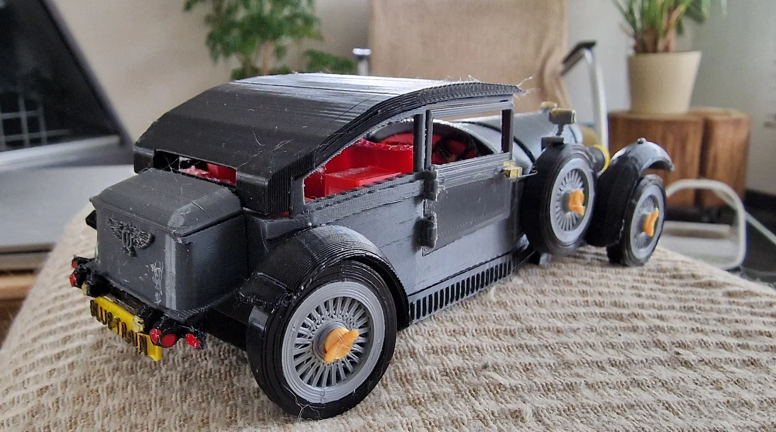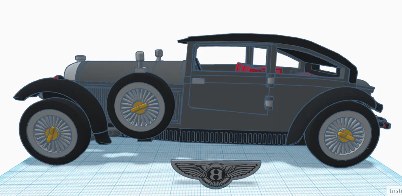 Mẫu Bentley The Bleu Train năm 1930 (thiết kế Ed van der Heijden). Thiết lập in: Supports: Yes, Resolution: Dynamic, Infill 50% line. Vật liệu PLA. Phù hợp cho dự án trưng bày phong cách cổ điển.