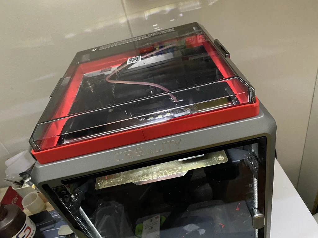 Creality K1 Riser giúp ống reverse Bowden không bị cạ vào nắp. Có 2 bản: bản thấp thoáng khí phù hợp in PLA và bản kín để in ABS/ASA. Bản thấp cần 4 nam châm 6x2mm và 4 vít M3.
