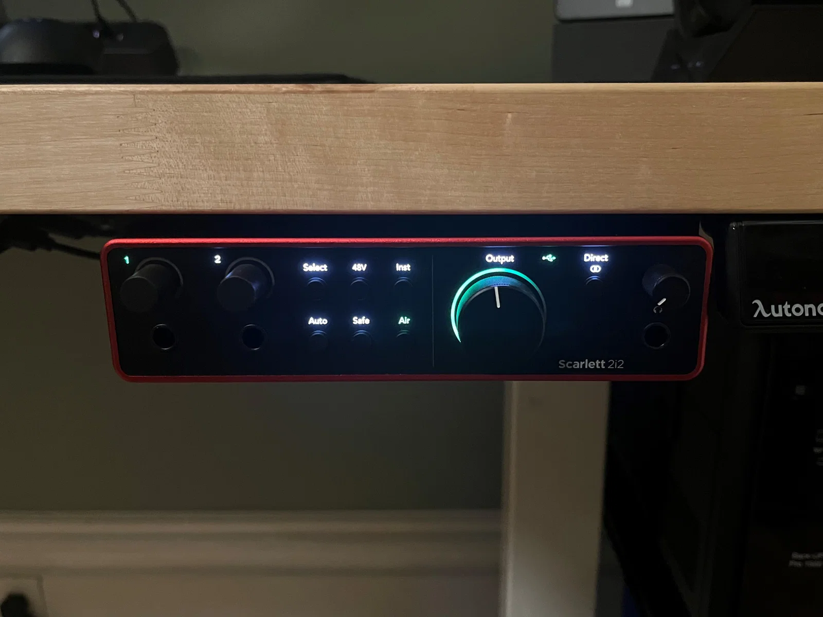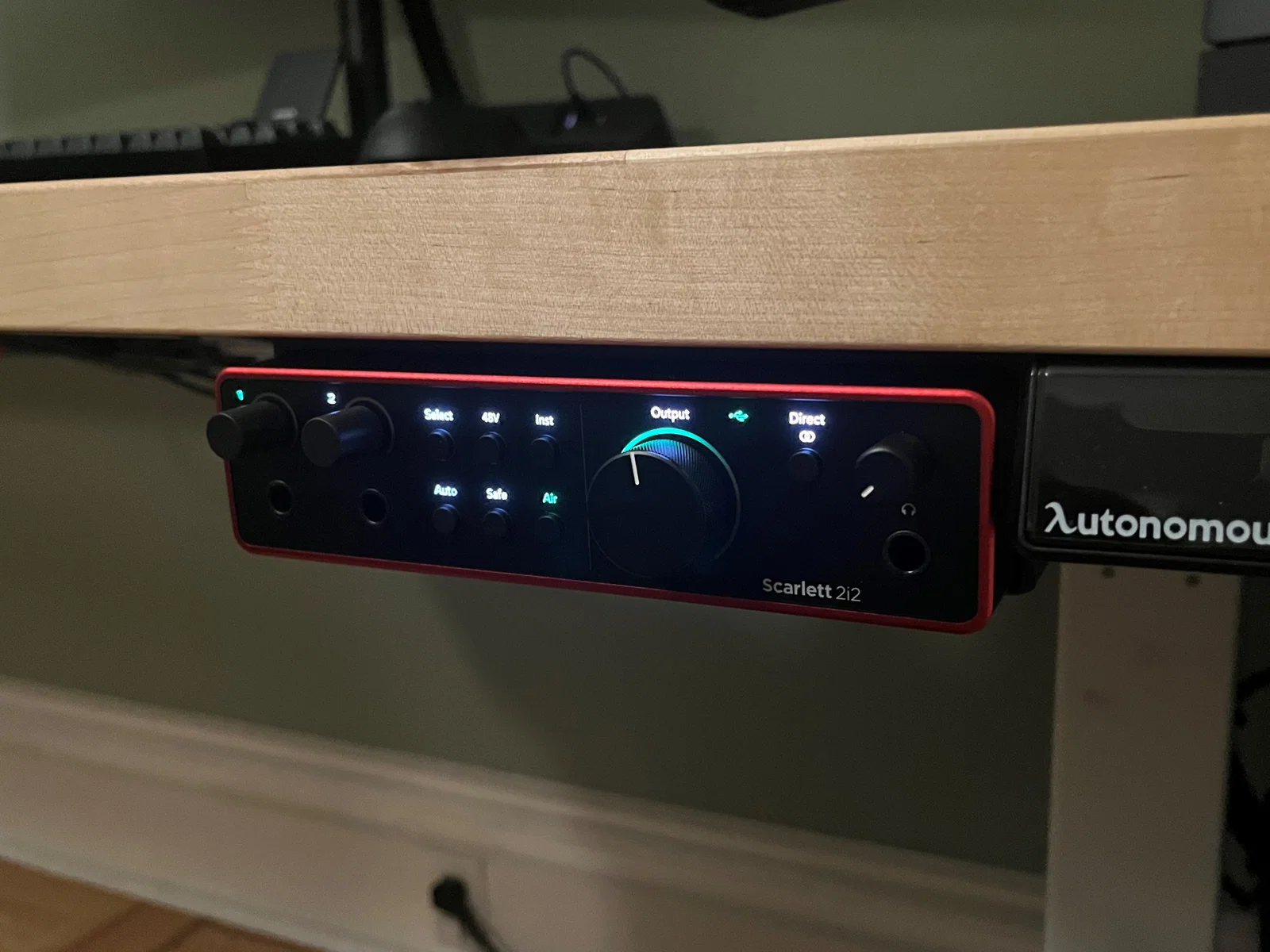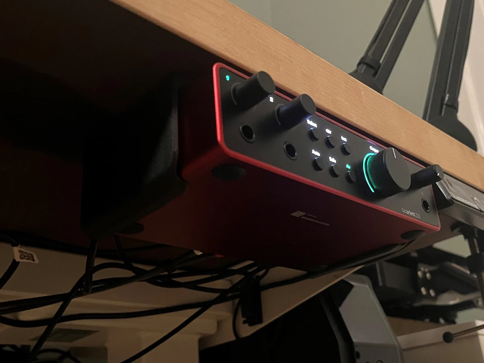 Giá treo Focusrite Scarlett 2i2 4th Gen gọn gàng dưới gầm bàn