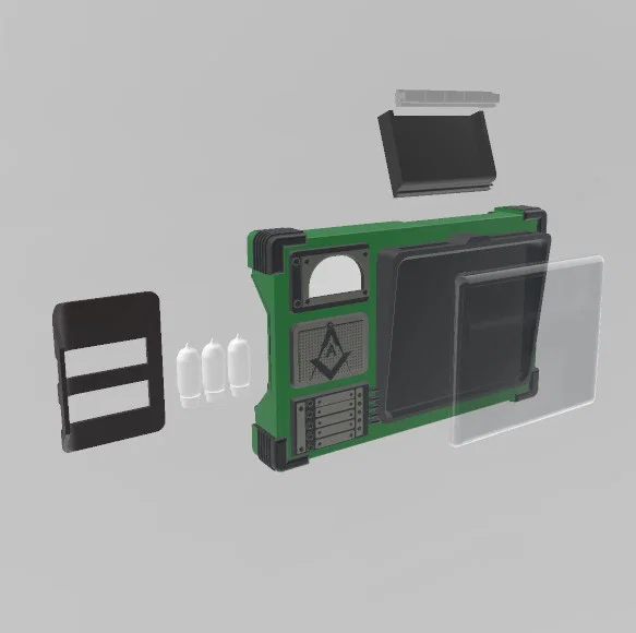 Bản dựng “Atta Boy” Pip Boy theo gameplay Fallout London. Cassette panel và nút bấm cố định bằng dowel 0.125 inch và kẹp vào. Một số part tách riêng để sơn/đi chi tiết; có thể cần chà nhám và dán keo.