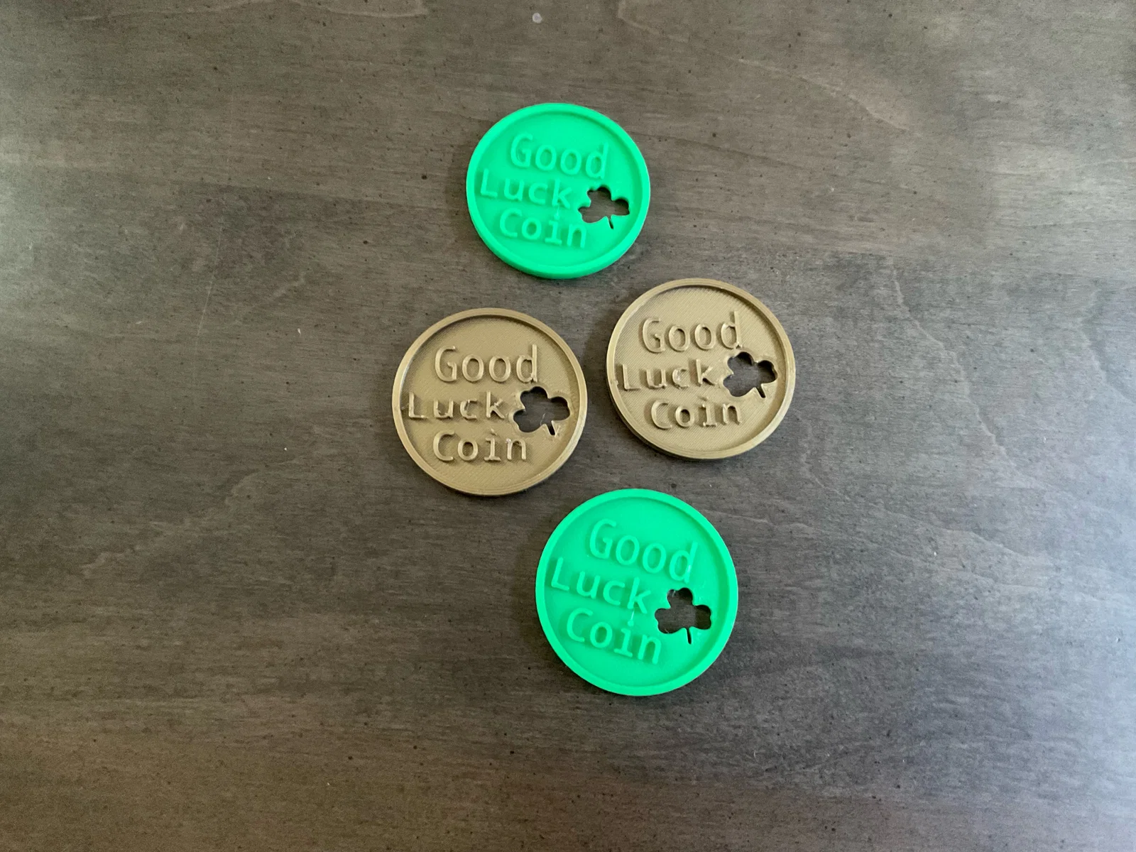 Đồng xu Good Luck cho ngày St. Patrick’s Day, hoặc bất kỳ ngày nào bạn muốn gửi lời chúc may mắn đến ai đó!!! Đây có thể là đồng xu mà chú Leprechaun để lại ở cuối cầu vồng cho mấy bé nhỏ đi tìm. Chúc bạn in vui vẻ!!! Các đồng xu màu Gold được mình in bằng Prusa Mini, còn các đồng xu màu Green được in bằng Bambu X1C.