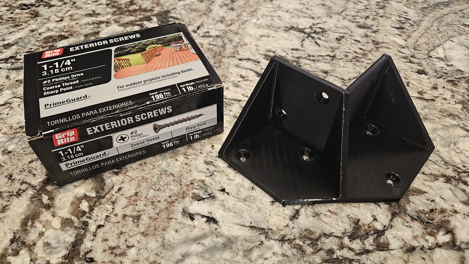 Bản remix của cái bracket gia cố cho Ikea Lack enclosure mà mình dựng lại từ đầu bằng FreeCAD để có thể parametric, kèm countersink cho ốc Grip Rite dùng ngoài trời.