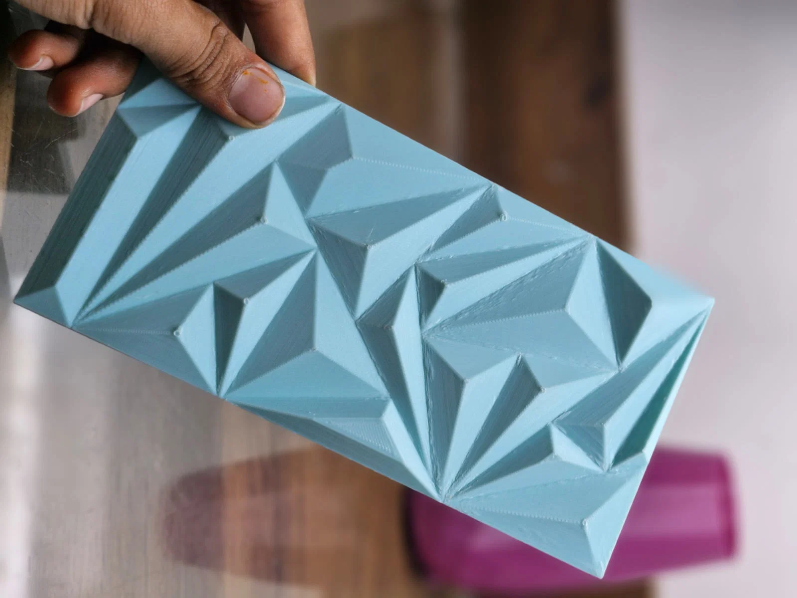 Việc in 3D mẫu tranh tường này khá đơn giản và không đòi hỏi quá nhiều kỹ thuật phức tạp. Nhờ cấu trúc bề mặt được tối ưu hóa, sản phẩm sau khi in sẽ có các cạnh vát sắc nét, mang lại vẻ ngoài chuyên nghiệp như những món đồ nội thất cao cấp mua từ cửa hàng. Bạn có thể phối màu nhựa phù hợp với tông màu chủ đạo của căn phòng để tạo ra một không gian nghệ thuật hài hòa và bắt mắt nhất.